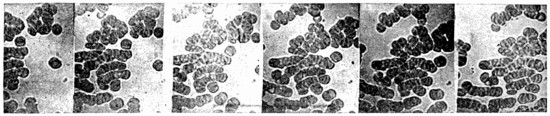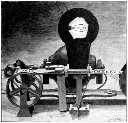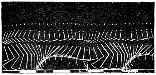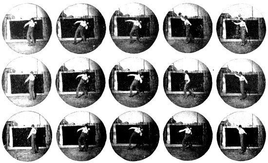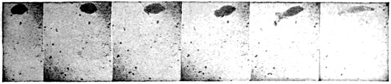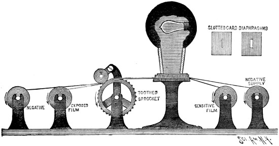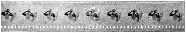 Page 488, illustration strip negative, actual size: the Edison film strip with single perforation (1891) was 19 mm wide.