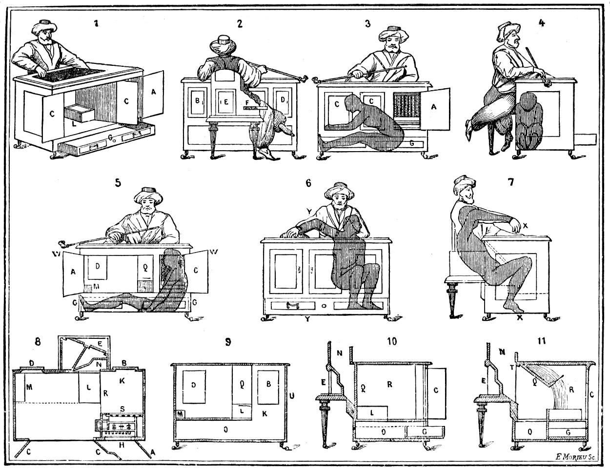 Guetle, J. Zaubermechanik oder Beschreibung mechanischer Zauberbelustigungen, mit darzu gehoerigen Maschinen fuer Liebhaber belustigender Kuenste. 2 Bde. mit 58 Tafeln. Nuernberg, 1794. 8vo.