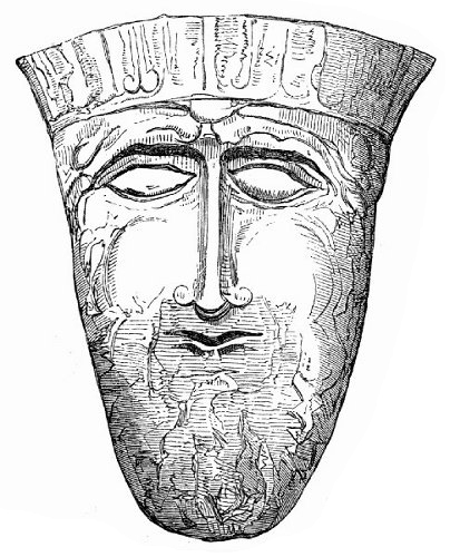 If we look backwards to the most remote times of Greek industry, we find that long before fire-casting became customary, almost every kind of work was carried out by the simple means of the hammer and tongs, wielded by skilful hands. Even products of art were created in this manner; and as statues, vases, and the like could not be put together by the process of soldering, nails were used for the purpose, as we learn not only from ancient writers, but even from monuments which have lately been discovered in Etruria, and the most important specimens of which are now possessed by the British Museum. In one of the tombs belonging to the vast necropolis of Vulci were discovered, about twenty years ago, a great many bronzes of this very ancient workmanship; one of them represents a bust placed on a basement covered with thin copper plates, and adorned by a row of figures, which are likewise chased; long curls fall down over the neck and shoulders, and these parts especially are formed in the most simple manner: one would be tempted to call it child-like, did not the whole composition show a certain character which enables the experienced eye of the art-philosopher to distinguish in these rude attempts at plastic metal work the very germ of those wonderfully-styled productions of a later period. The engraving here annexed, giving a side view of this remarkable, and as yet unique monument, is intended to show the arrangement of the hair, which, in spite of its simple treatment, presents as a whole some trace of grace, and principles of fine proportions. We perceive that the curls are formed by rolling and twining together small strips of bronze plate, connected with the head itself by the mechanical means we have alluded to. There is no trace of soldering; and we may be sure that we possess in this figure a good specimen of those hammer-wrought sculptures of old which were spoken of by the Greeks themselves as belonging to a fabulous period.