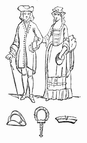 The inhabitants of Roussillon are passionately fond of dancing; they have some dances peculiar to themselves. The men generally commence the country dance by a contre-pas, the air of which is said to be of Greek origin; the women then mingle in the dance, when they jointly perform several figures, passing one among the other, and occasionally turning each other round. At a particular change in the air, the male dancer must dexterously raise his partner and place her on his hand in a sitting posture. Accidents sometimes happen upon these occasions, and the lady falls to the ground amidst the jokes and laughter of her companions. One of these dances, called lo salt, is performed by four men and four women. At the given signal, the cavaliers simultaneously [Pg 680] raise the four ladies, forming a pyramid, the caps of the ladies making the apex. The music which accompanies these dances consists of a lo flaviol, a sort of flageolet, a drum, two hautboys, prima and tenor, and the cornemuse, called in the country lo gratla: this instrument, by its description, must somewhat resemble the bagpipes. The dance called Segadilles is performed with the greatest rapidity: at the end of every couplet, for the airs are short and numerous, the female dancers are raised, and seated on the hands of their partners.