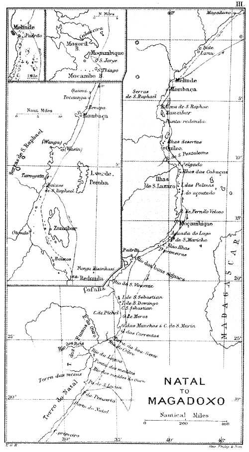 Santa Maria Islets and Anjediva, p. 80; the voyage across the Arabian Sea, p. 87; Magadoxo, p. 88; Malindi, p. 89; Malindi to S. Braz, p. 91; S. Braz to the Rio Grande, p. 92; conclusion, p. 93 |