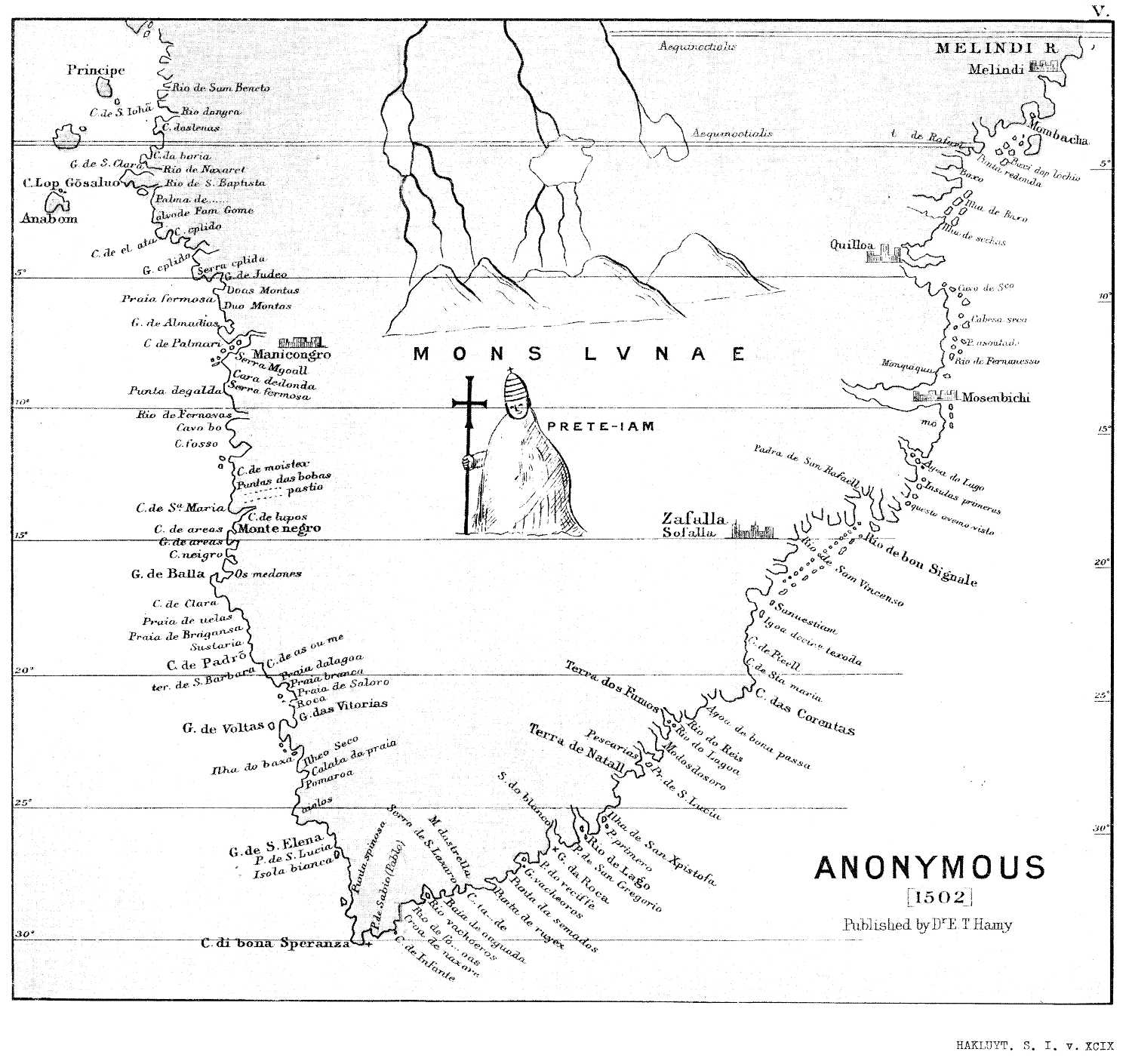 [459] The late Dr. Kohl published a facsimile of this map in the Zeitschrift für Erdkunde, I, 1856, but it is not very accurate. That portion of the map which lies between the Guinea islands and Dias’s furthest accompanies my Paper on “Cão, Dias and Behaim”, in the Geographical Journal.