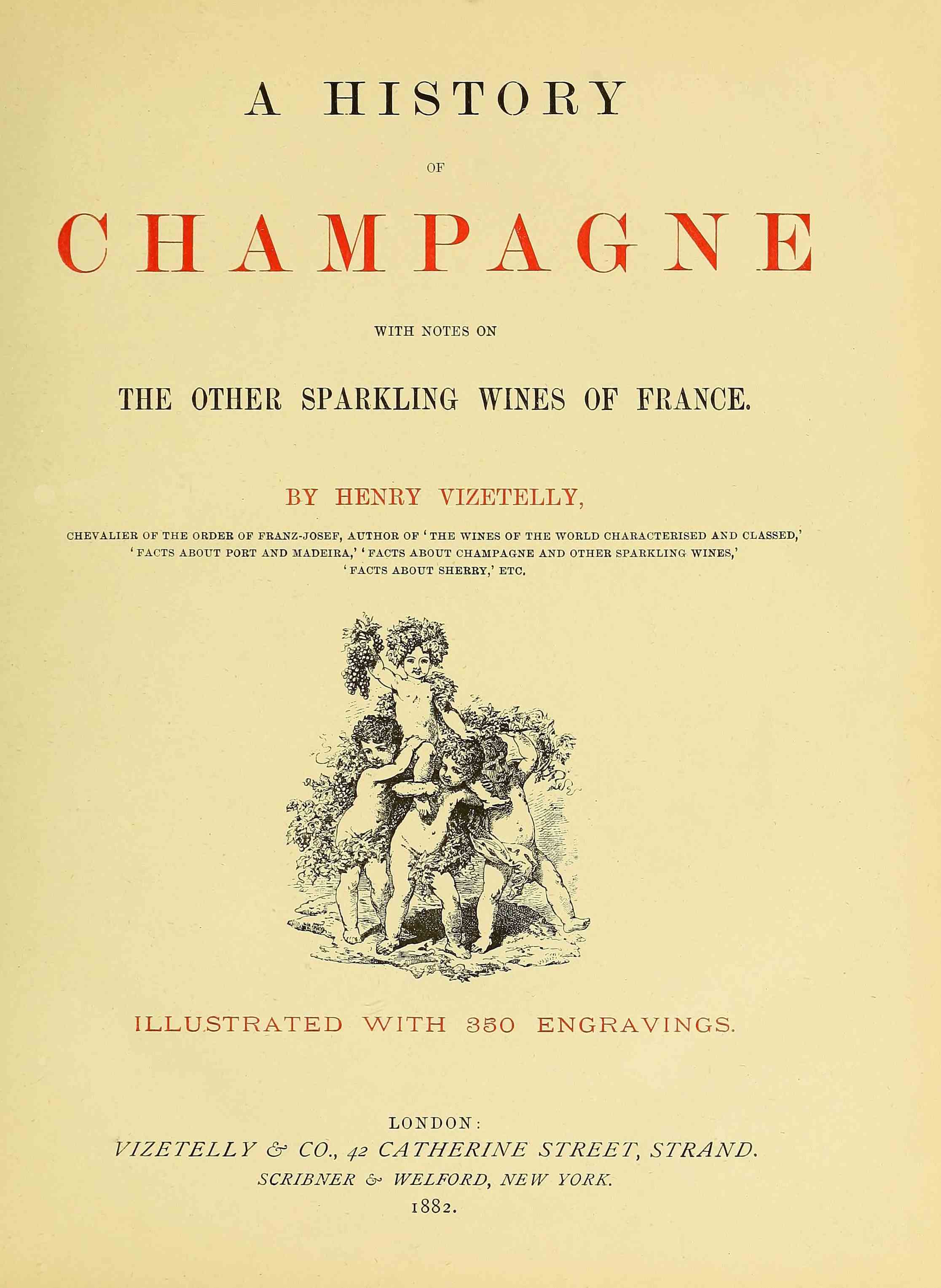 The numerous illustrations scattered throughout the present volume have been derived from every available source that suggested itself. Ancient MSS., early-printed books, pictures and pieces of sculpture, engravings and caricatures, all of greater or less rarity, have been laid under contribution; and in addition, nearly two hundred original sketches have been made under the author’s immediate superintendence, with the object of illustrating the principal localities and their more picturesque features, and depicting all matters of interest connected with the growth and manipulation of the various sparkling wines which are here described.