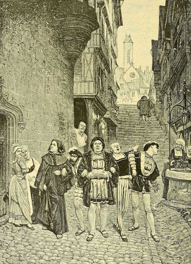 [426] It is generally supposed that the gate took its name from a hospital standing a short distance without the walls, and destined for the reception either of lepers or of pilgrims arriving after nightfall. The prevalent opinion is that it bore the inscription Dei merito, translated as Dieu le mérite, which became corrupted into Dieu-Lumière. Under Louis XI. it certainly figures as Di Merito.