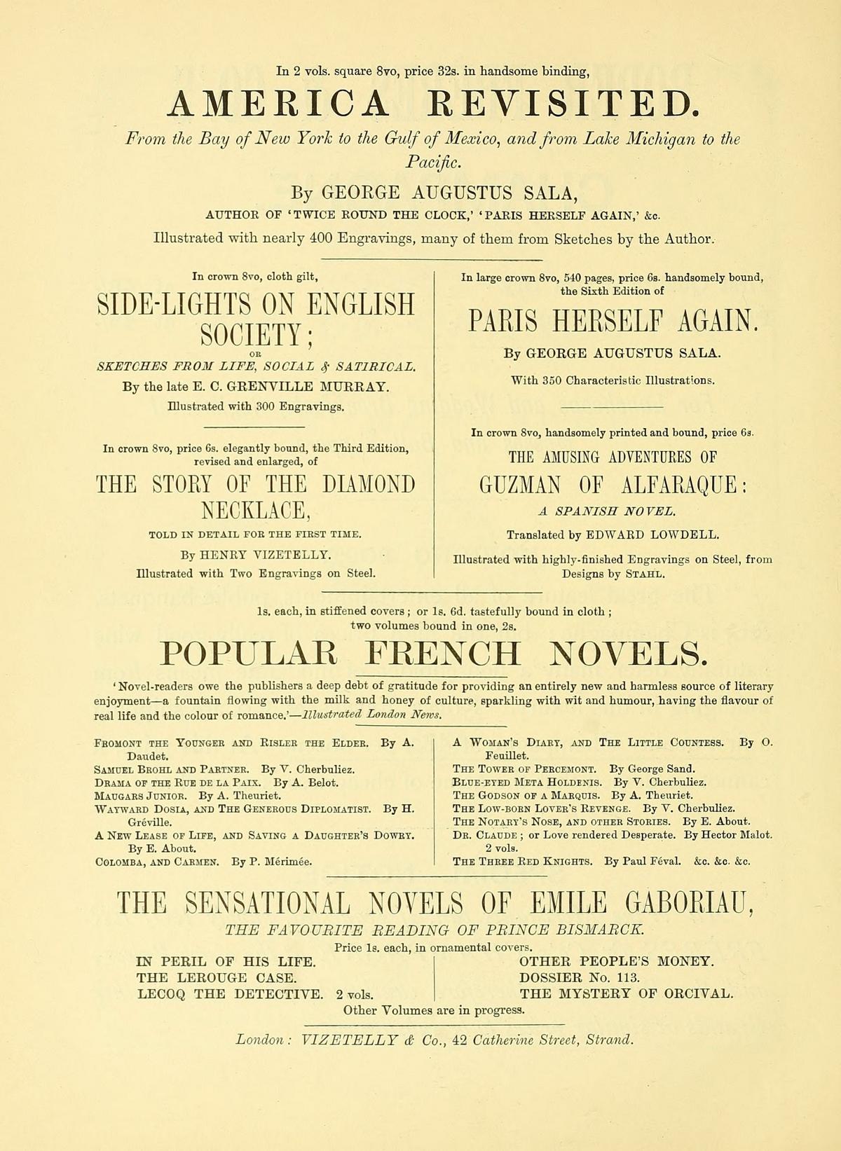 VIZETELLY & CO., 42 CATHERINE STREET, STRAND.