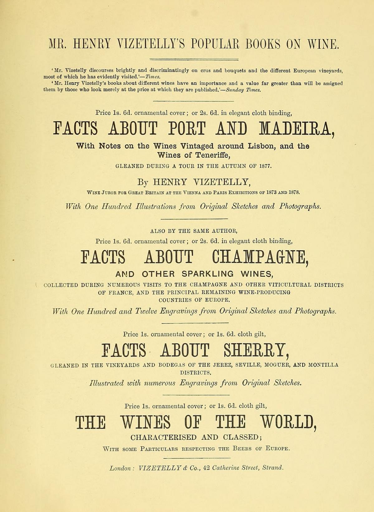 CHEVALIER OF THE ORDER OF FRANZ-JOSEF, AUTHOR OF ‘THE WINES OF THE WORLD CHARACTERISED AND CLASSED,’ ‘FACTS ABOUT PORT AND MADEIRA,’ ‘FACTS ABOUT CHAMPAGNE AND OTHER SPARKLING WINES,’ ‘FACTS ABOUT SHERRY,’ ETC.
