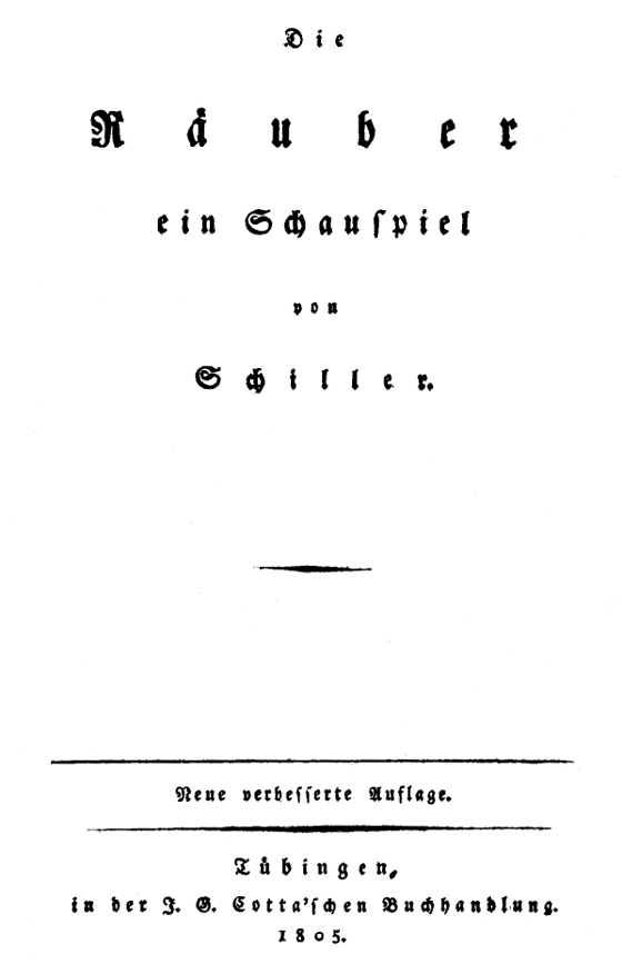 R. Moor (läßt ihre Hand fahren.) Es ist aus! — Ich wollte umkehren und zu meinem Vater geh'n, aber der[S. 198] im Himmel sprach, es soll nicht seyn. (Kalt.) Blöder Thor ich, warum wollt' ich es auch? Kann denn ein grosser Sünder noch umkehren? Ein grosser Sünder kann nimmermehr umkehren, das hätt' ich längst wissen können — Sey ruhig, ich bitte dich, sey ruhig! so ists ja auch recht — Ich habe nicht gewollt, da er mich suchte, itzt da ich ihn suche, will Er nicht, was ist billiger? — Rolle doch deine Augen nicht so — er bedarf ja meiner nicht. Hat er nicht Geschöpfe die Fülle, Einen kann er so leicht missen, und dieser Eine bin nun ich. — Kommt, Kameraden!
