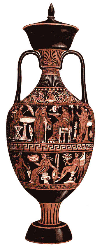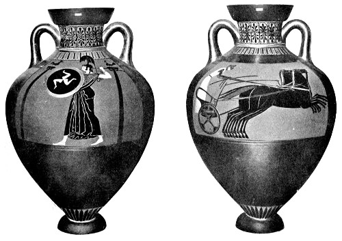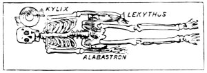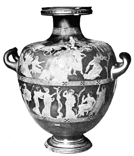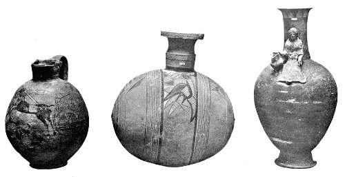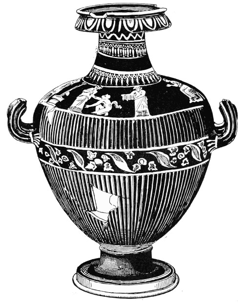 | Mention of painted vases in literature—Civil and domestic use of pottery—Measures of capacity—Use in daily life—Decorative use—Religious and votive uses—Use in funeral ceremonies—Shapes and their names—Ancient and modern classifications—Vases for storage—Pithos—Wine-amphora—Amphora—Stamnos—Hydria—Vases for mixing—Krater—Deinos or Lebes—Cooking-vessels—Vases for pouring wine—Oinochoë and variants—Ladles—Drinking-cups—Names recorded by Athenaeus—Kotyle—Skyphos—Kantharos—Kylix—Phiale— Rhyton—Dishes—Oil-vases—Lekythos—Alabastron—Pyxis—Askos—Moulded vases | 131–201 |