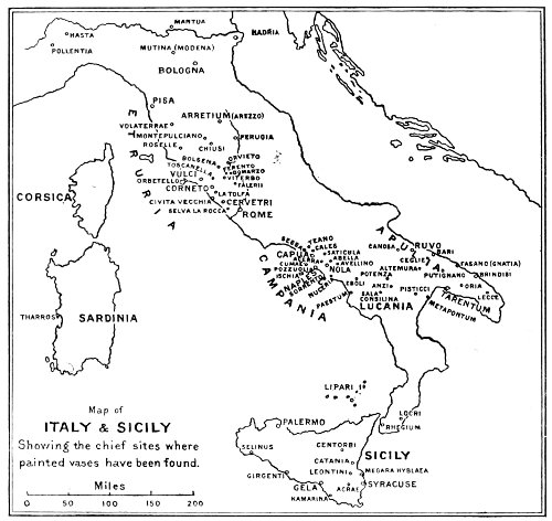 | Historical and geographical limits of subject—Description of Greek tombs—Tombs in Cyprus, Cyrenaica, Sicily, Italy—Condition of vases when found—Subsequent restorations—Imitations and forgeries—Prices of vases—Sites on which painted vases have been found: Athens, Corinth, Boeotia, Greek islands, Crimea, Asia Minor, Cyprus, North Africa, Italy, Etruria—Vulci discoveries—Southern Italy, Sicily | 31–88 |