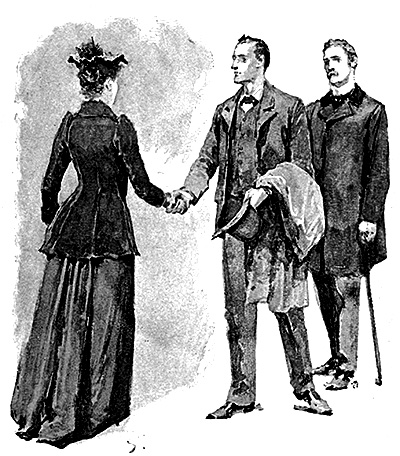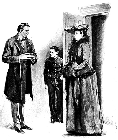 “Excellent! We shall then look thoroughly into the affair. Of course there is only one feasible explanation. You have been brought there to personate some one, and the real person is imprisoned in this chamber. That is obvious. As to who this prisoner is, I have no doubt that it is the daughter, Miss Alice Rucastle, if I remember right, who was said to have gone to America. You were chosen, doubtless, as resembling her in height, figure, and the color of your hair. Hers had been cut off, very possibly in some illness through which she has passed, and so, of course, yours had to be sacrificed also. By a curious chance you came upon her tresses. The man in the road was, undoubtedly, some friend of hers—possibly her fiancé—and no doubt, as you wore the girl’s dress and were so like her, he was convinced from your laughter, whenever he saw you, and afterwards from your gesture, that Miss Rucastle was perfectly happy, and that she no longer desired his attentions. The dog is let loose at night to prevent him from endeavoring to communicate with her. So much is fairly clear. The most serious point in the case is the disposition of the child.”