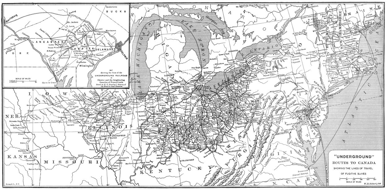 Illustration "'UNDERGROUND' ROUTES TO CANADA W.H. Siebert, 189_"—the 4th digit is illegible.