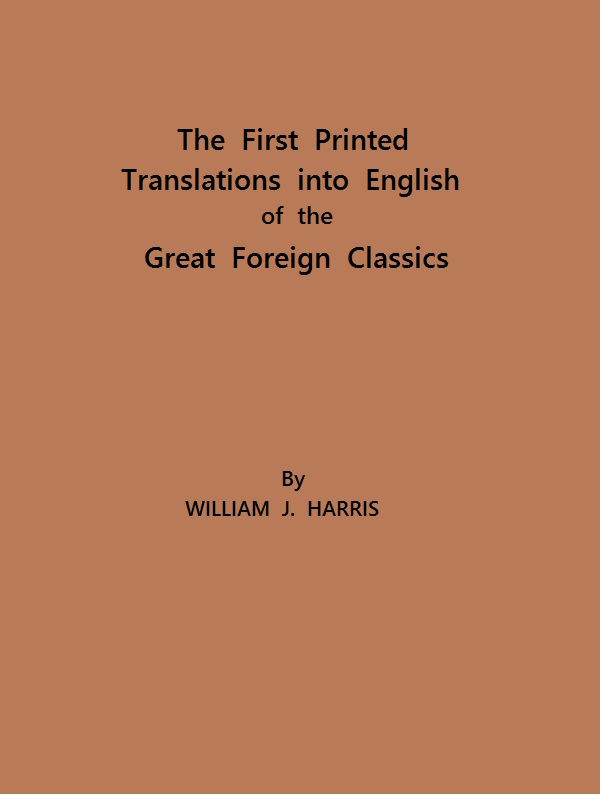 Students have been asked such questions as—give the date of the first translation into English of Don Quixote, of The Arabian Nights, Boccaccio's Decameron, or of Homer. Such questions as these naturally involve some inquiry and research on the part of the student, and occupy a larger amount of time than is necessary for the purpose. Hence the necessity for a brief bibliography of this nature, which will show at a glance the first translations into English of the most important foreign classics, and save inquirers the fatigue of searching catalogues, bibliographies and similar works.