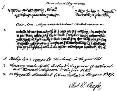 | Illustrations: Behring’s Sea and Adjacent Waters, 77; Buache’s Map of the North Pacific and Fusang, 79; Ruins of the Church at Kakortok, 86; Fac-simile of a Saga Manuscript and Autograph of C. C. Rafn, 87; Ruin at Kakortok, 88; Map of Julianehaab, 89; Portrait of Rafn, 90; Title-page of Historia Vinlandiæ Antiguæ per Thormodum Torfæum, 91; Rafn’s Map of Norse America, 95; Rafn’s Map of Vinland (New England), 100; View of Dighton Rock, 101; Copies of its Inscription, 103; Henrik Rink, 106; Fac-simile of the Title-page of Hans Egede’s Det gamle Gronlands nye Perlustration, 108; A British Ship of the Time of Edward I, 110; Richard H. Major, 112; Baron Nordenskjöld, 113. | |