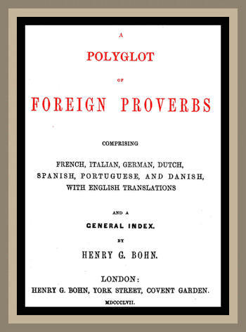 While engaged in editing my Handbook of English Proverbs, it occurred to me that a Collection of Foreign Proverbs, arranged in monographs, and brought as far as possible into juxta-position by a General Index, would be an interesting volume, as well to the ordinary reader as to the linguist. And it happened that more than one public writer, in reviewing my Handbook, suggested nearly the same idea, which determined me to realise it as speedily as other engagements would permit.