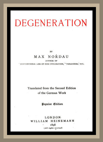 Some among these degenerates in literature, music, and painting have in recent years come into extraordinary prominence, and are[viii] revered by numerous admirers as creators of a new art, and heralds of the coming centuries.