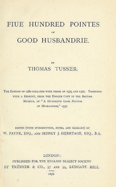 The Edition of 1580 collated with those of 1573 and 1577. Together with a Reprint, from the Unique Copy in the British Museum, of "A Hundreth Good Pointes of Husbandrie," 1557.
