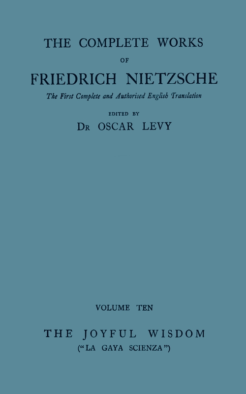 "The Joyful Wisdom," written in 1882, just before "Zarathustra," is rightly judged to be one of Nietzsche's best books. Here the essentially grave and masculine face of the poet-philosopher is seen to light up and suddenly break into a delightful smile. The warmth and kindness that beam from his features will astonish those hasty psychologists who have never divined that behind the destroyer is the creator, and behind the blasphemer the lover of life. In the retrospective valuation of his work which appears in "Ecce Homo" the author himself observes with truth that the fourth book, "Sanctus Januarius," deserves especial attention: "The whole book is a gift from the Saint, and the introductory verses express my gratitude for the most wonderful month of January that I have ever spent." Book fifth "We Fearless Ones," the Appendix "Songs of Prince Free-as-a-Bird," and the Preface, were added to the second edition in 1887.