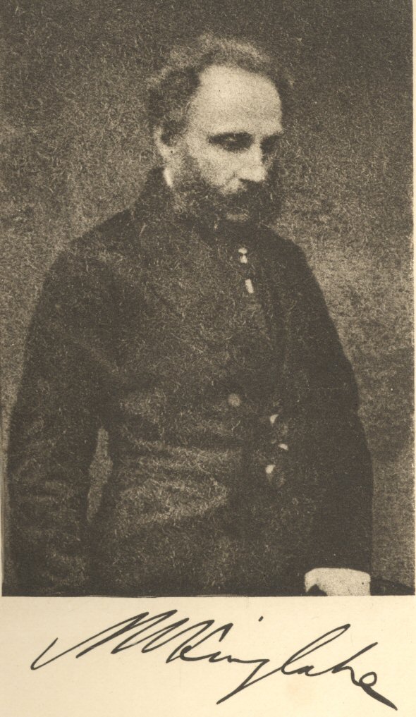 It is just eleven years since Kinglake passed away, and his life has not yet been separately memorialized. A few years more, and the personal side of him would be irrecoverable, though by personality, no less than by authorship, he made his contemporary mark. When a tomb has been closed for centuries, the effaced lineaments of its tenant can be re-coloured only by the idealizing hand of genius, as Scott drew Claverhouse, and Carlyle drew Cromwell. But, to the biographer of the lately dead, men have a right to say, as Saul said to the Witch of Endor, “Call up Samuel!” In your study of a life so recent as Kinglake’s, give us, if you choose, some critical synopsis of his monumental writings, some salvage from his ephemeral and scattered papers; trace so much of his youthful training as shaped the development of his character; depict, with wise restraint, his political and public life: but also, and above all, re-clothe him “in his habit as he lived,” as friends and p. viassociates knew him; recover his traits of voice and manner, his conversational wit or wisdom, epigram or paradox, his explosions of sarcasm and his eccentricities of reserve, his words of winningness and acts of kindness: and, since one half of his life was social, introduce us to the companions who shared his lighter hour and evoked his finer fancies; take us to the Athenæum “Corner,” or to Holland House, and flash on us at least a glimpse of the brilliant men and women who formed the setting to his sparkle; “dic in amicitiam coeant et foedera jungant.”