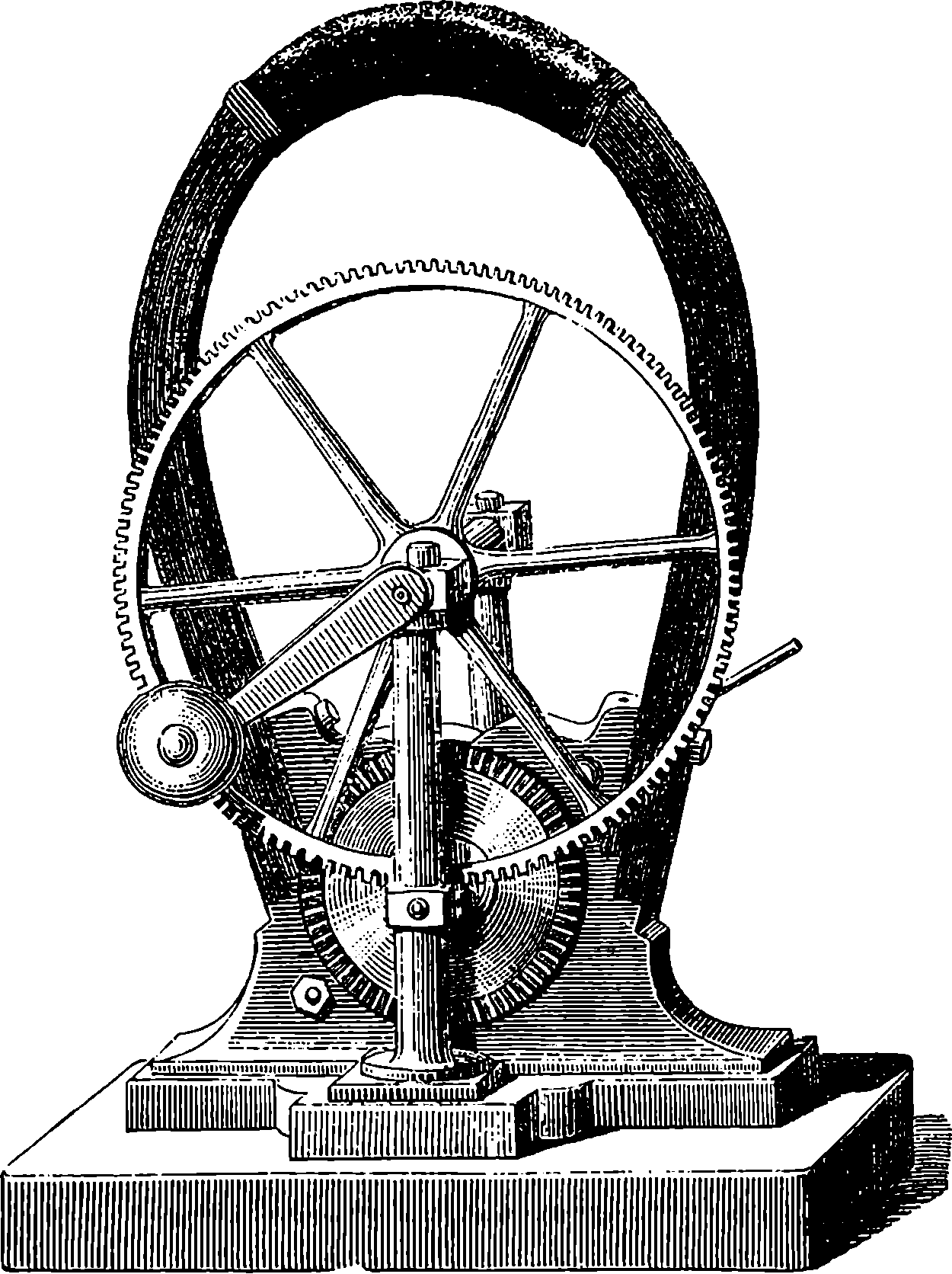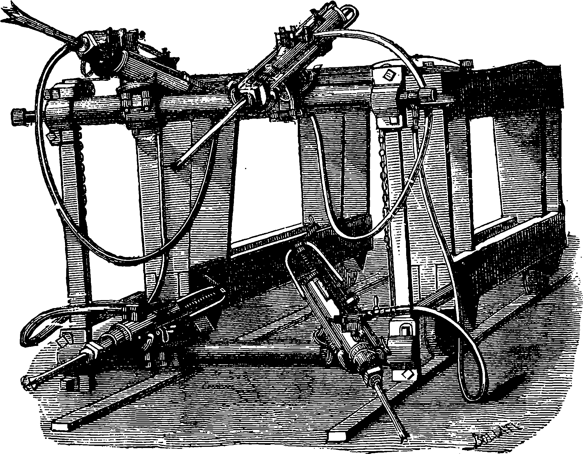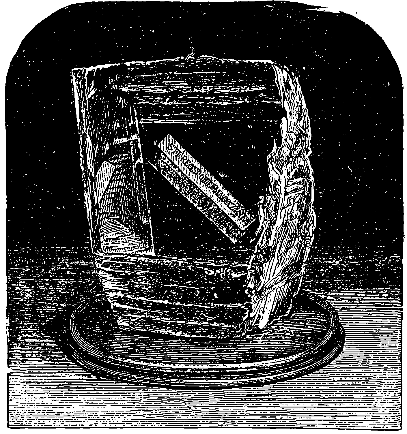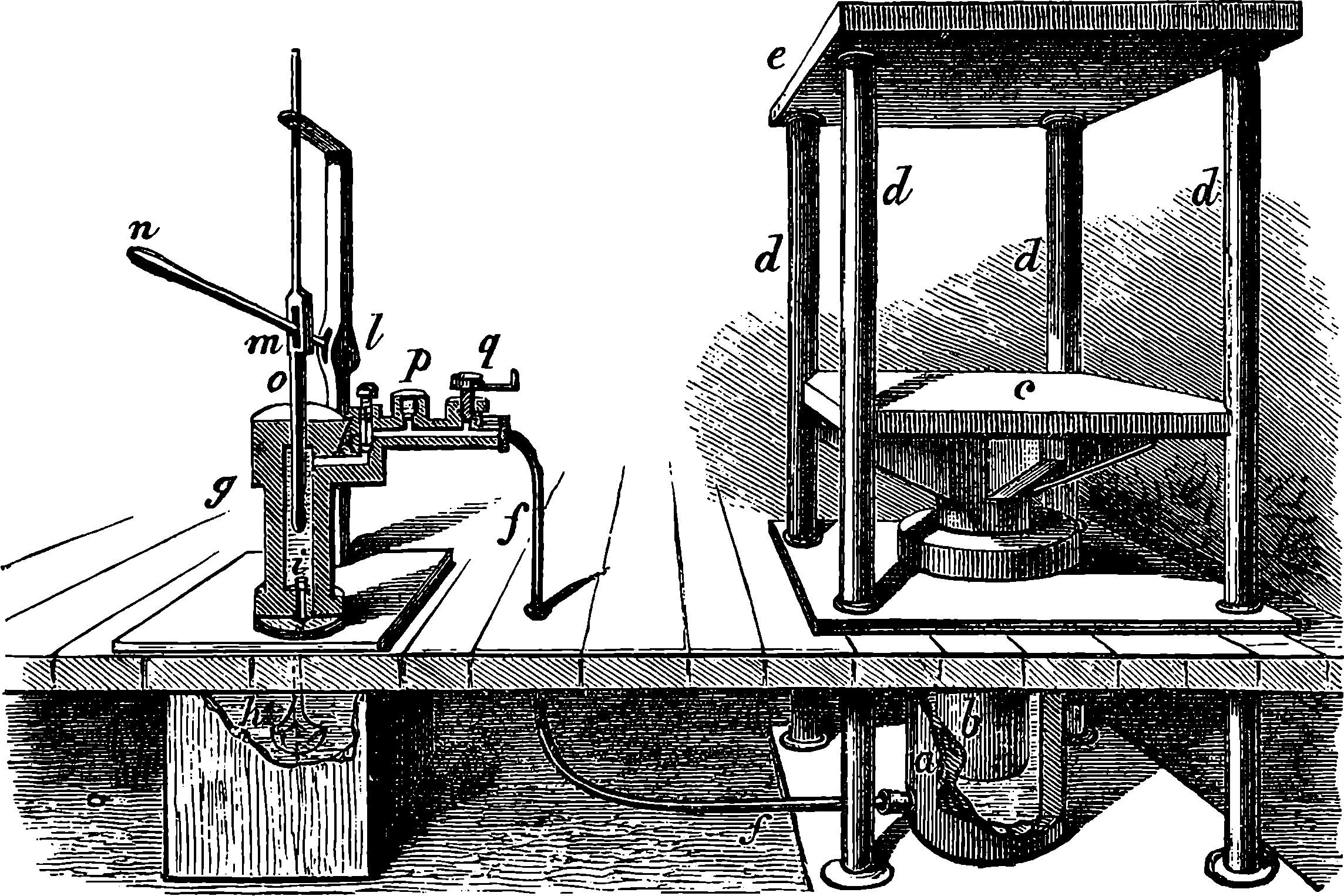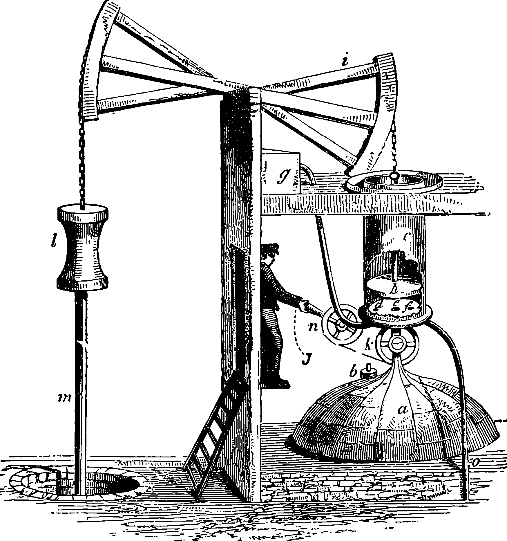 Dr. Joule arranged paddles of brass or iron, so that they could turn freely in a circular box containing water or quicksilver. From the sides of the box partitions projected inwards, which contained openings that permitted the divided arms of the paddle to pass, and preventing the liquid from 805moving en masse, thus caused a churning action when the paddle was turned. Now, every one who has worked a rotatory churn knows that a considerable resistance is offered to this action; but every one does not know that under these circumstances the liquid becomes warmer. It was Dr. Joule’s object to discover how much the temperature of his liquid was raised by a measured quantity of work. He used very delicate thermometers, and had to take a number of precautions which need not here be described; and he obtained the definite quantity of work by the descent of a known weight through a known distance, a cord attached to the weight being wound on a drum, which communicated motion to the paddle. The experiments were conducted with varying circumstances, to avoid chances of error, and were repeated very many times until uniform and consistent indications were always obtained. The result of the experiments showed that 772 units of work (foot-pounds) furnished heat which would raise the temperature of 1 lb. of water from 32° to 33° F., which is the unit of heat. This number, 772, is a constant of the greatest importance in scientific and practical calculations, and is called “the mechanical equivalent of heat.” The amount of work it represents is sometimes called a “Joule,” and is always represented in algebraical formulæ by “J.” Mr. Joule’s first paper appeared in 1843, and soon afterwards various branches of the subject of “The Equivalence and Persistence of Forces” were taken up by a number of able men, who have advanced its principles along various lines of inquiry. Among the most noted contributors to this question we find the names of Sir William Thomson, Helmholtz, James Thomson, Rankin, Clausius, Tait, Andrews, and Maxwell.