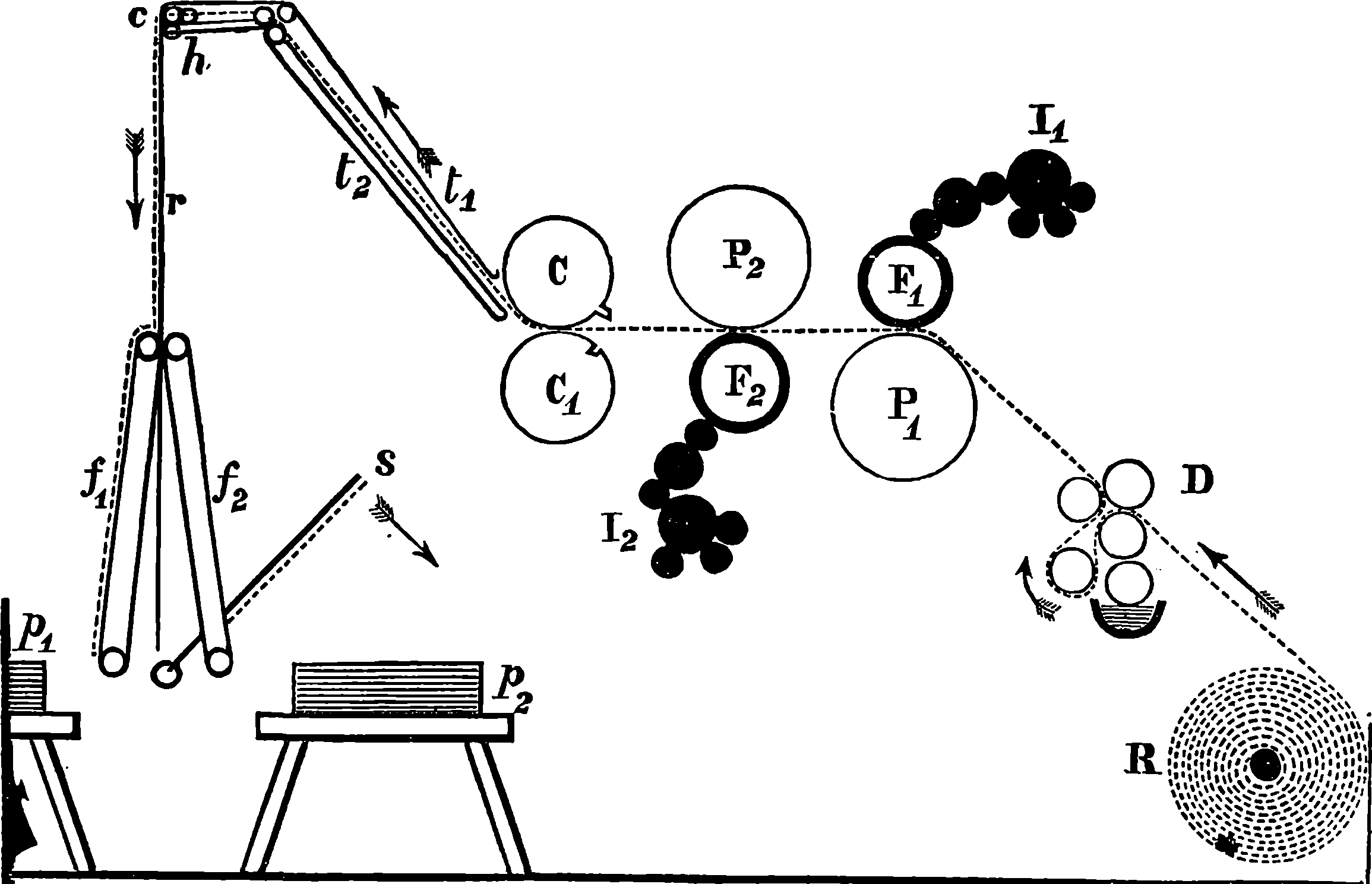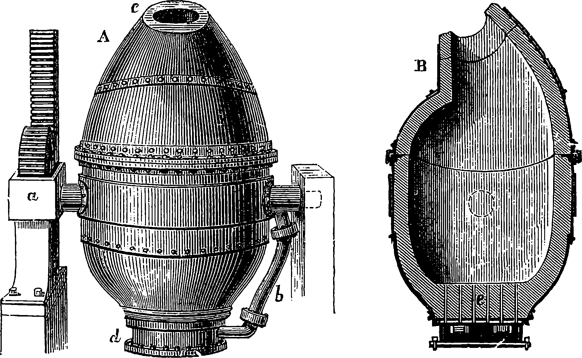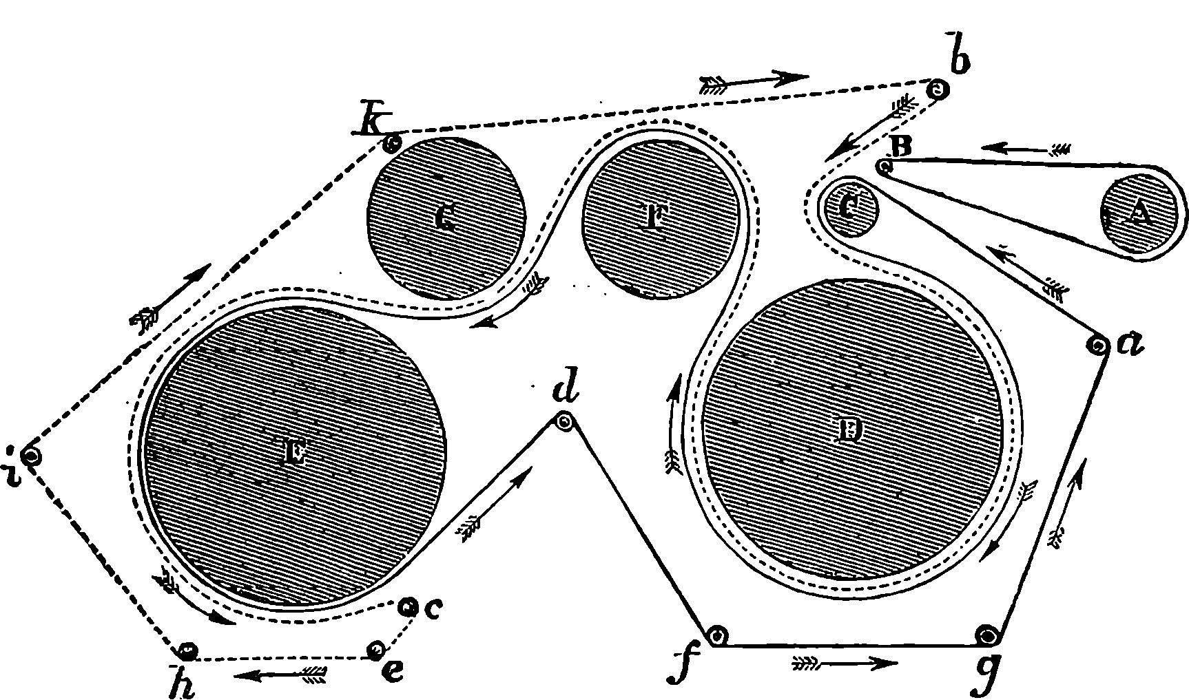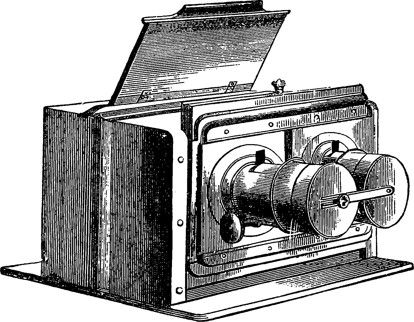 Dr. Joule arranged paddles of brass or iron, so that they could turn freely in a circular box containing water or quicksilver. From the sides of the box partitions projected inwards, which contained openings that permitted the divided arms of the paddle to pass, and preventing the liquid from 805moving en masse, thus caused a churning action when the paddle was turned. Now, every one who has worked a rotatory churn knows that a considerable resistance is offered to this action; but every one does not know that under these circumstances the liquid becomes warmer. It was Dr. Joule’s object to discover how much the temperature of his liquid was raised by a measured quantity of work. He used very delicate thermometers, and had to take a number of precautions which need not here be described; and he obtained the definite quantity of work by the descent of a known weight through a known distance, a cord attached to the weight being wound on a drum, which communicated motion to the paddle. The experiments were conducted with varying circumstances, to avoid chances of error, and were repeated very many times until uniform and consistent indications were always obtained. The result of the experiments showed that 772 units of work (foot-pounds) furnished heat which would raise the temperature of 1 lb. of water from 32° to 33° F., which is the unit of heat. This number, 772, is a constant of the greatest importance in scientific and practical calculations, and is called “the mechanical equivalent of heat.” The amount of work it represents is sometimes called a “Joule,” and is always represented in algebraical formulæ by “J.” Mr. Joule’s first paper appeared in 1843, and soon afterwards various branches of the subject of “The Equivalence and Persistence of Forces” were taken up by a number of able men, who have advanced its principles along various lines of inquiry. Among the most noted contributors to this question we find the names of Sir William Thomson, Helmholtz, James Thomson, Rankin, Clausius, Tait, Andrews, and Maxwell.