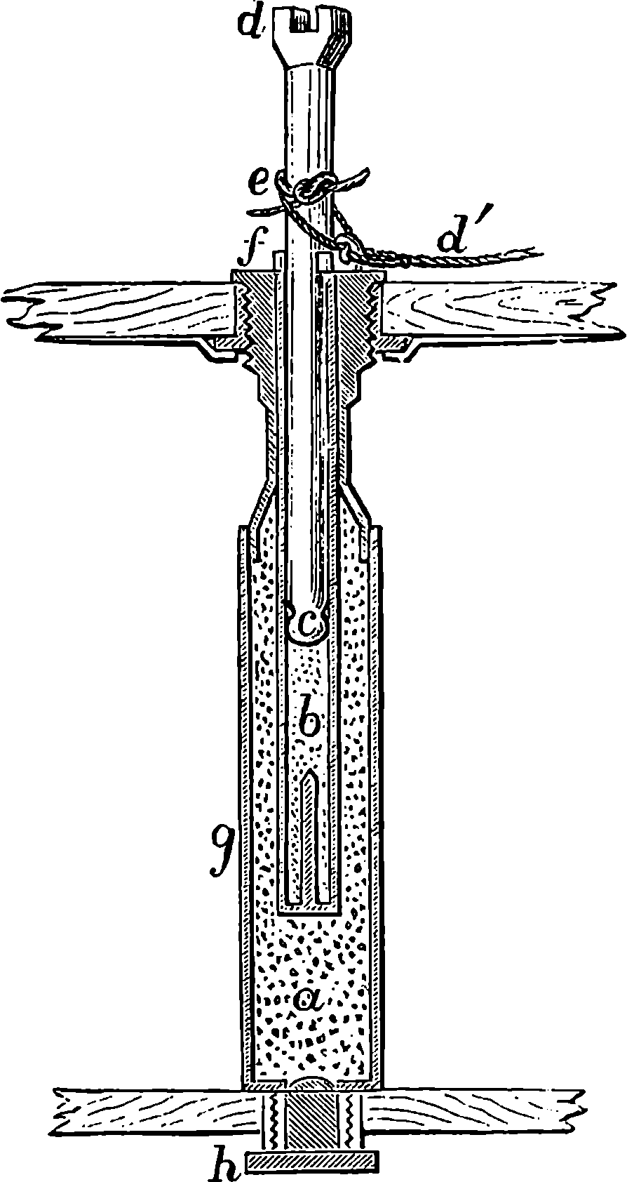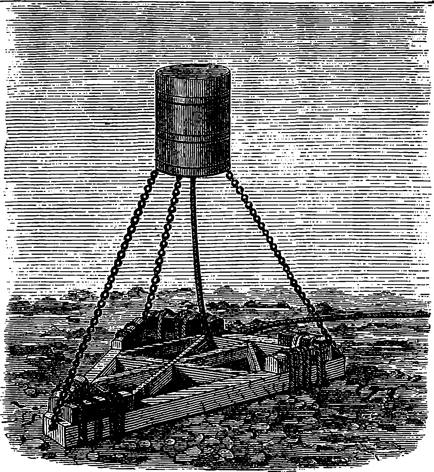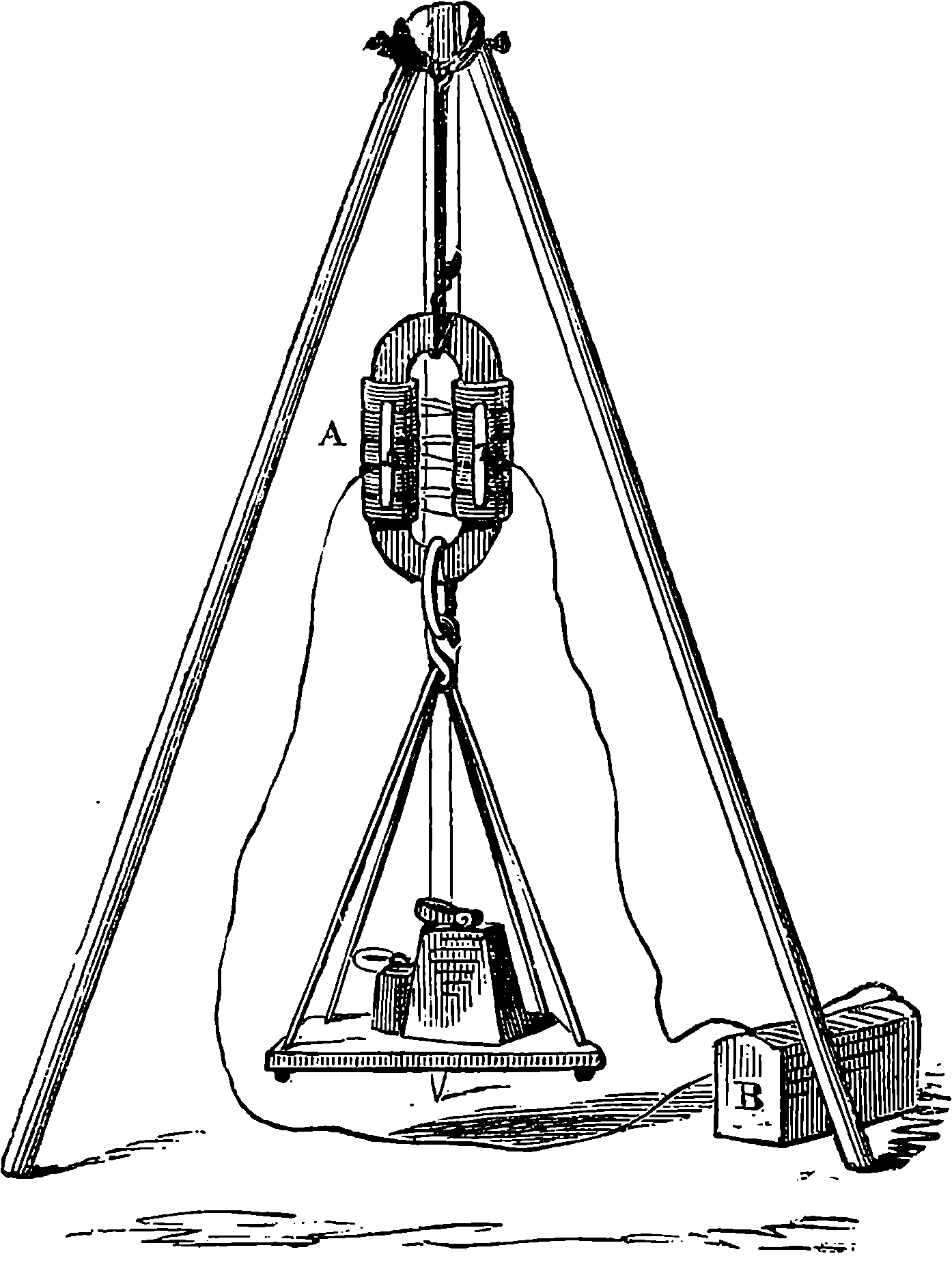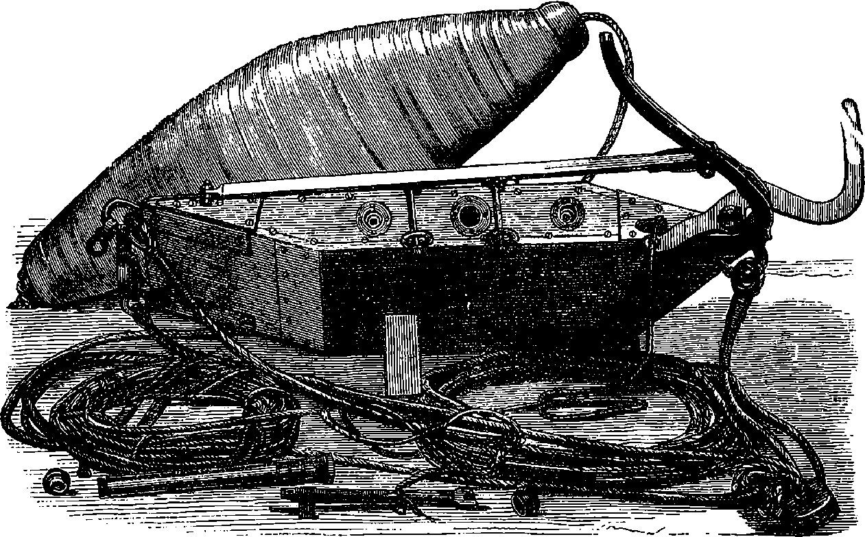 Before we proceed to give an indication of one of Dr. Joule’s methods of making this determination, we may point out that if a weight be raised a certain height, the work which is done in raising it will be given out by the weight in its descent. If you carry a 1 lb. weight to the top of the London Monument, which is 200 ft. high, you perform 200 units of work. When the weight is at the top, the work is not lost; for let the weight be attached to a cord passing over a pulley, and it will, as it descends, draw up to the top another 1 lb. weight.[21] If you drop the weight so that it falls freely, it descends with a continually increasing velocity, strikes the pavement, and comes to rest. Still your work is not lost. The collision of the weight and the pavement develops heat, just as in the case of the experiment depicted on page 168, but to a less degree—the increase of temperature might not be sensible to the touch, but could be recognized by delicate instruments. Your work, then, has now changed into the form of heat—the weight and the pavement are hotter than before. This heat is carried off by contiguous substances. But still your work is not lost, for it has made the earth warmer. The heat, however, soon flows away by radiation from the earth, and is diffused into space. The final result of your work is, then, that a certain measurable quantity of heat has been sent off into space. Is your work now finally lost? Not so: in reality, it is only diffused throughout the universe in the form of radiant heat of low intensity. Yet it is lost for ever for useful purposes; for from this final form of diffused heat there is no known or conceivable process by which heat can be gathered up again.