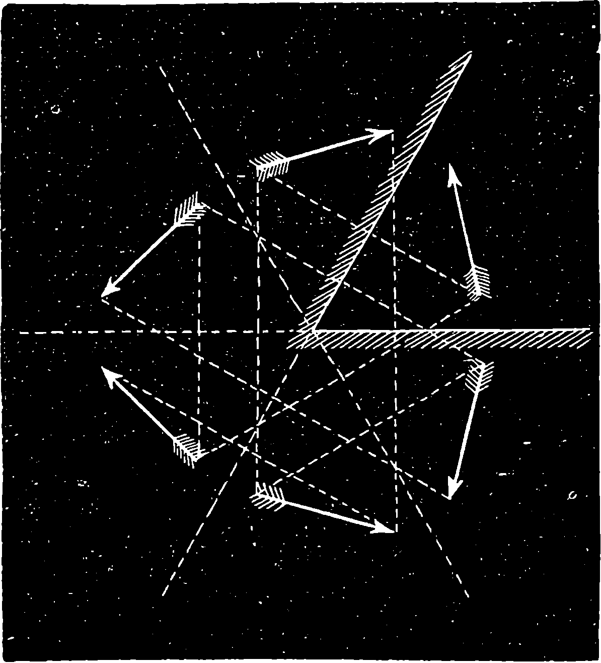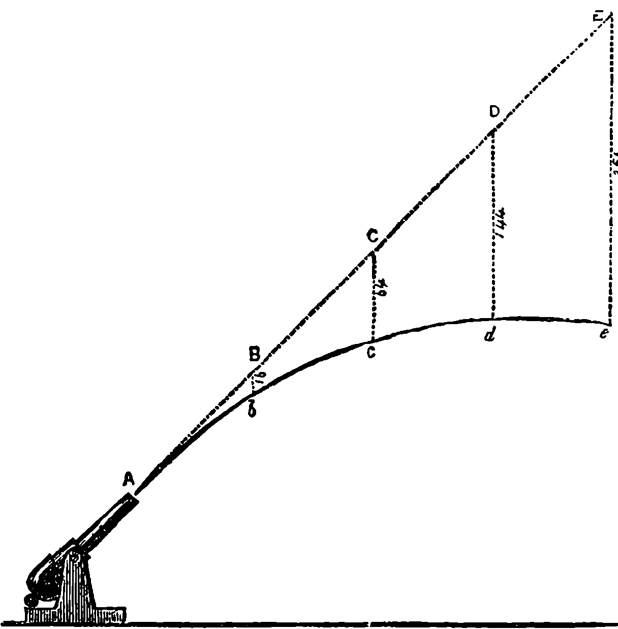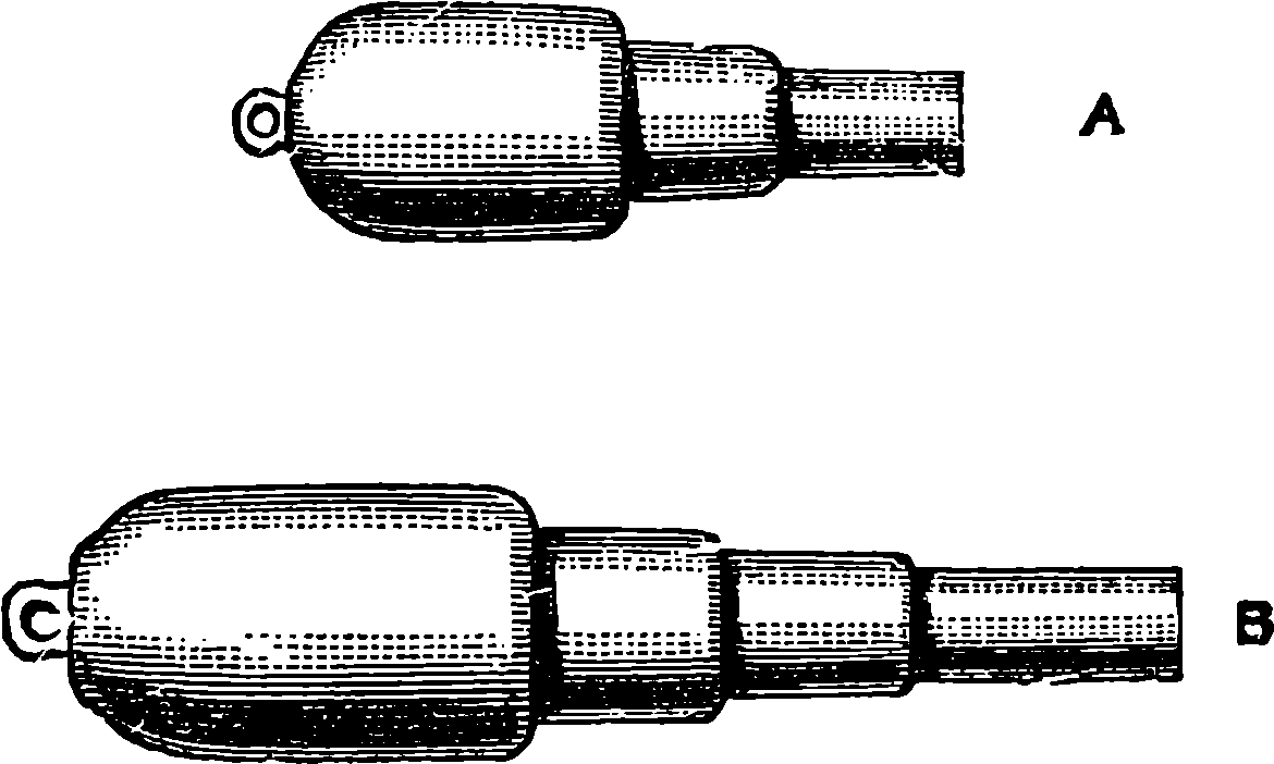 A typical example of the storing up of energy is furnished by a crossbow. The moment a man begins to bend the bow he is doing work, because he pulls the string in opposition to the bow’s resistance to a change in its form; and it is plain that the amount of energy thus expended is measurable. Suppose, now, the bow has been bent and the string caught in the notch, from which it is released by drawing the trigger when the discharge of the bow is desired. The bow may be retained for an indefinite period in the bent condition, and in this state it possesses, in the form of potential energy, all the work which has been expended in bending it, and which it will, in fact, give out, in some way or other, whenever the trigger is drawn. To fix our ideas, let us suppose that to draw the string over the notch required a pull of 50 lbs. over a space of 6 in.; that is equivalent to 50 × ½ = 25 units of work. Now let the bow be used to shoot an arrow weighing ¼ lb. vertically upwards. The height in feet to which the arrow will rise multiplied into its weight in pounds will be the work done upon it by the bow. Now, we say that experiment proves that in the case supposed the arrow would rise just 100 ft., so that the work done by the 807bow (¼ × 100 = 25) would be precisely that done upon it. For the sake of simplicity, we keep this illustration free from the mention of interfering causes, which have to be considered and allowed for when the matter is put to the real test of quantitative experiment. The instance of the crossbow brings into notice a highly instructive circumstance, which is this: the bow, which it may have taken the strength of a Hercules to bend, will shoot its bolt by the mere touch of a child on the trigger. In the same way, when a man fires a gun, he merely permits the potential energy contained in the charge to convert itself into actual, or kinetic, energy. The real source of the energy, in the case of the child discharging the crossbow, is the muscular power of the man who drew it; the real source of the energy in exploding gunpowder is the separation of carbon atoms from oxygen atoms, and that has been done by the sun’s rays, as truly as the string was pulled away from the bow by muscular power. If we turn our attention to nitro-glycerine or to nitro-cellulose, we can, by following the chemical actions giving rise to these substances, in like manner trace their energies to our great luminary. The unstable union by which oxygen and nitrogen atoms are locked up in the solid and liquid forms of nitro-cellulose and nitro-glycerine is also the work of the sun; for nitrogen acids, or rather nitrates, are produced naturally under certain electrical and other conditions of the atmosphere, which are due, directly or indirectly, to the sun’s action; and they cannot be formed artificially, except by imitating the natural conditions, as by passing electric sparks through air, &c.