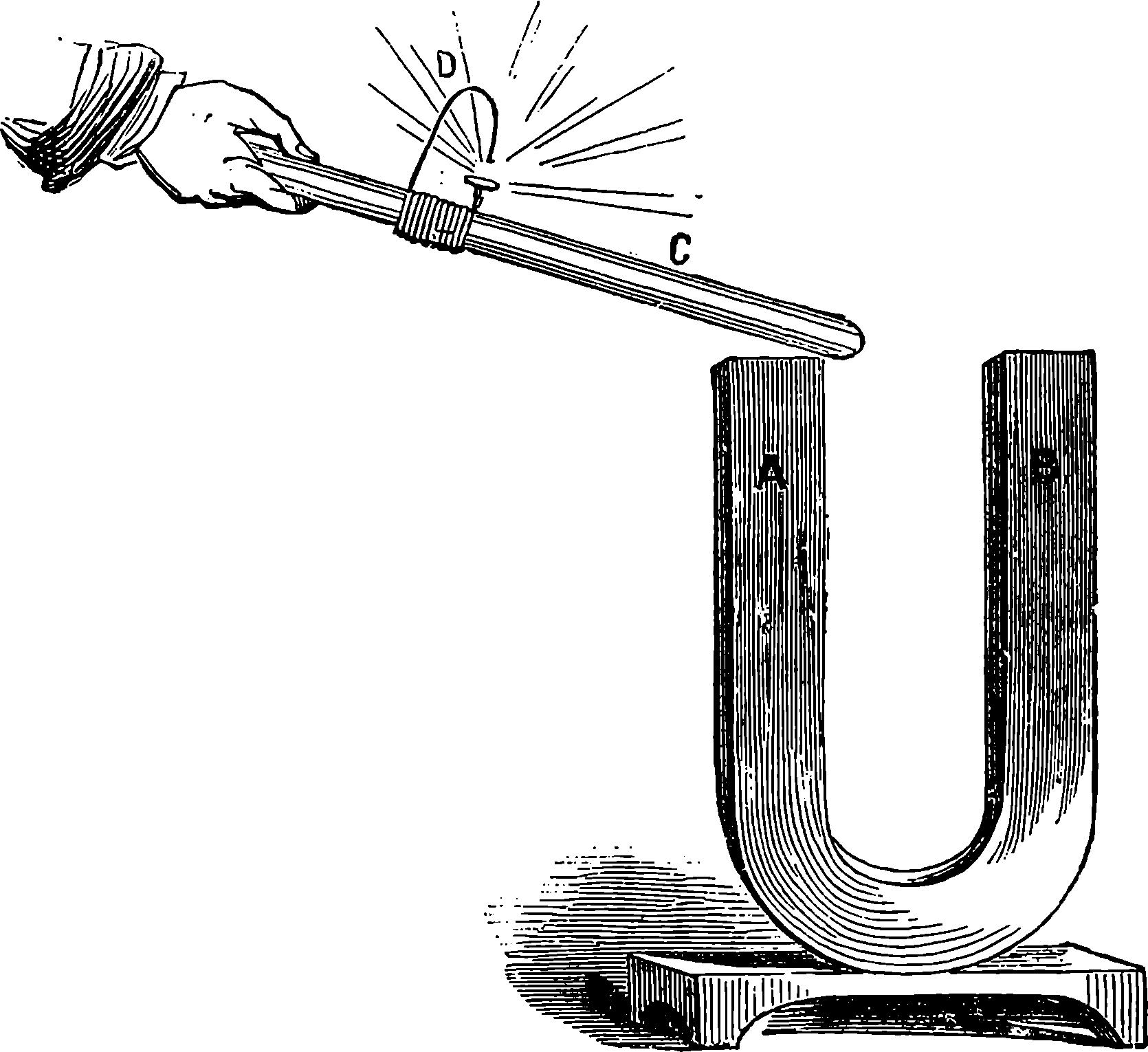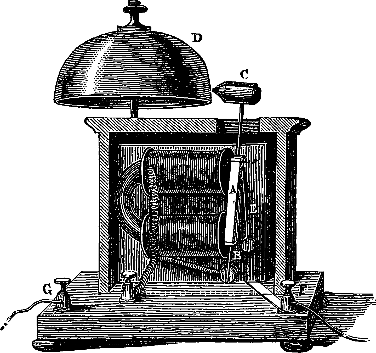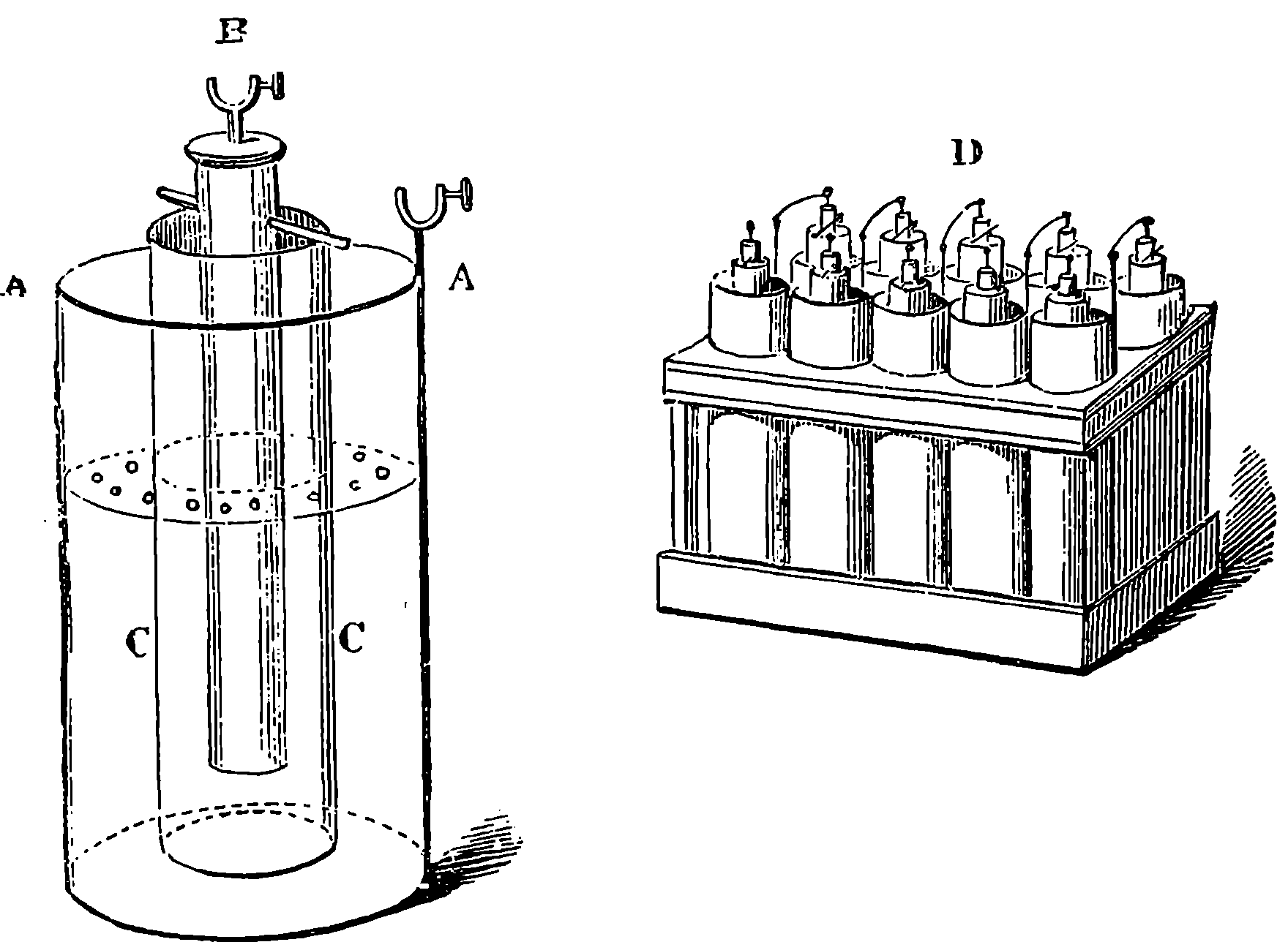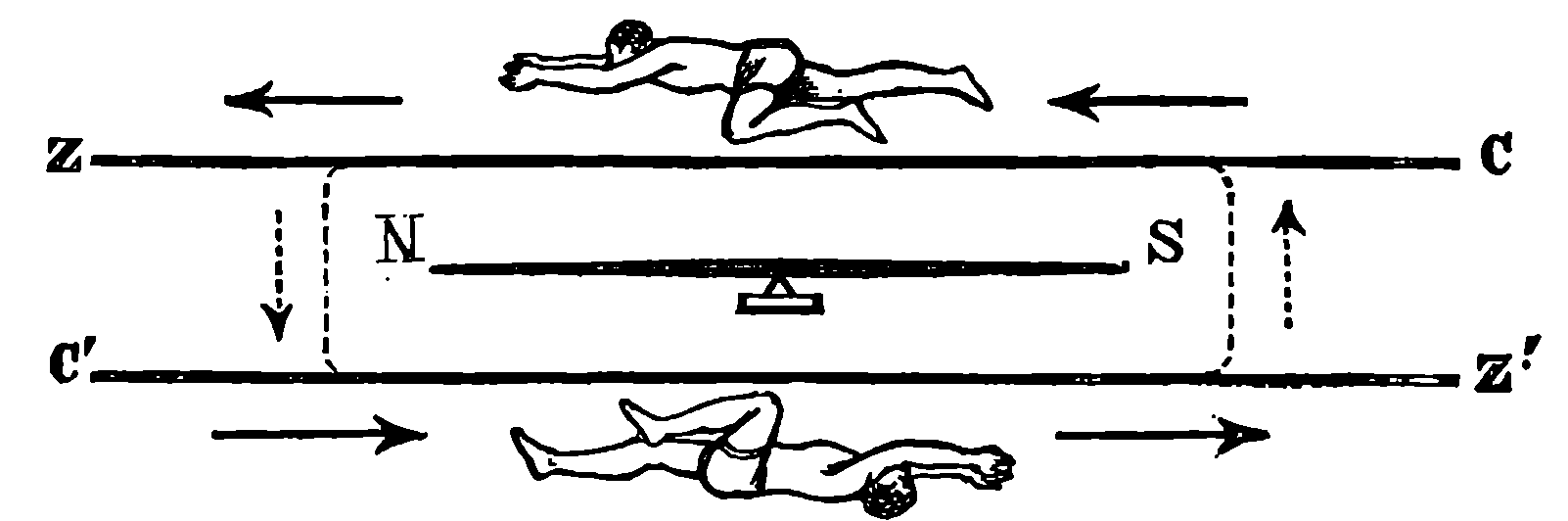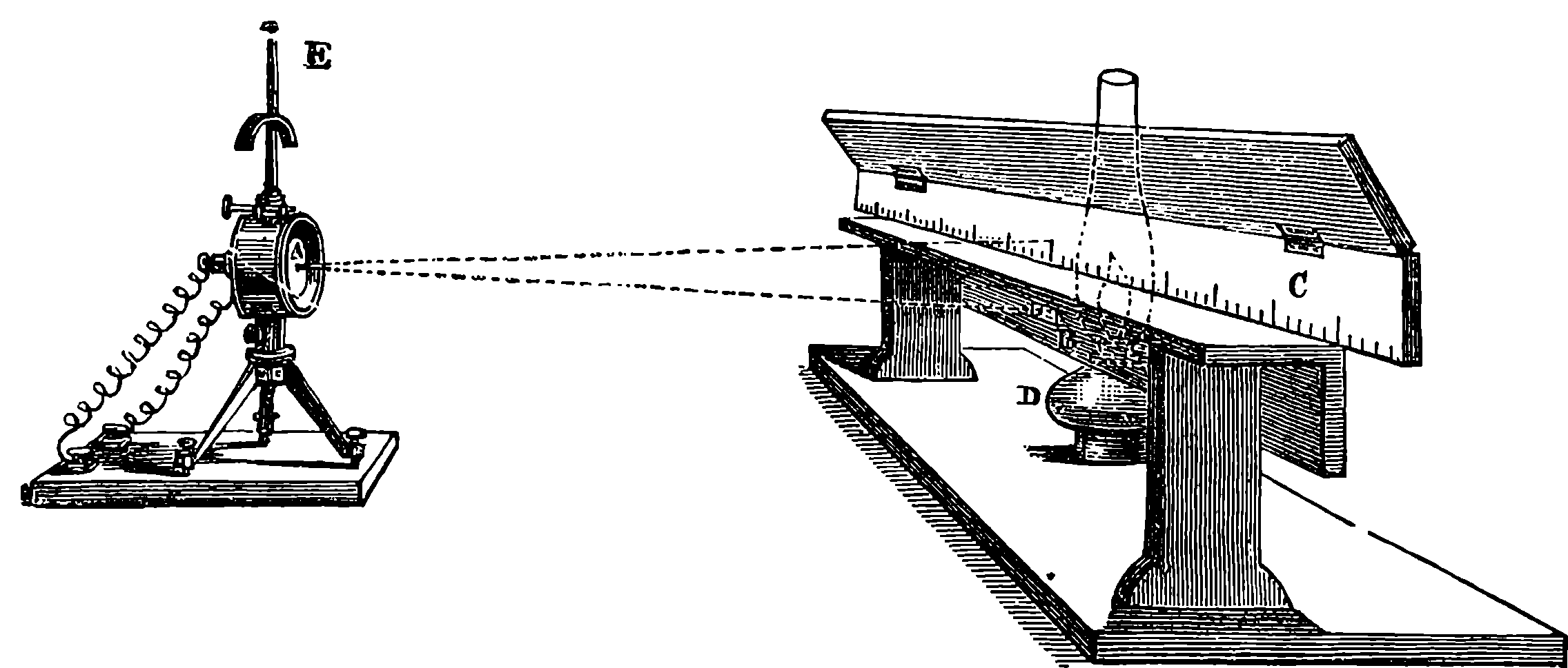 Perhaps the first step should be to point out the fact of the various forces of nature—mechanical action, heat, light, electricity, magnetism, chemical action—being so related that any one can be made to produce all the rest directly or indirectly. Some examples of the conversion of one form of force into another occur in the foregoing pages. Thus, on page 485 an experiment is described in which electricity produces a mechanical action; electricity is also shown, on page 496, to produce heat; on page 491 chemical action; on page 501 magnetism. Then, as instances of the inverse actions, there is on page 488, in the first paragraph on “Electric Induction,” an account of the mode in which mechanical movements may give rise to electricity; and in the experiments in pages 508, 509, and particularly in the account of the Gramme machine, page 511, it is shown how mechanical movements can, through magnetism, produce electricity. The voltaic element, page 491, and the galvanic batteries, are instances of chemical action supplying electricity. On page 518 a striking instance is mentioned of changes in the forms of force. Every lighted candle is a case of chemical action giving rise to light; and interesting examples of the inverse relation are referred to on page 608. On page 168 is represented the conversion of arrested motion into heat and light. We have, indeed, sufficient examples to arrange a series of these conversions of forces in a circle. Thus, chemical action (oxidation in the animal system) supplies muscular power, this sets in motion a Gramme machine, the motion is converted into electricity, the electricity produces the electric light, and light causes chemical action, and with this the cycle is complete. In the steam engine heat is converted into mechanical force, and many cases will present 804themselves to the reader’s mind in which mechanical actions give rise to heat. The doctrine of a mutual dependence and convertibility among all the forms of force was first definitively taught in England by Mr. (now Justice) Grove, in 1842; and almost simultaneously Dr. Meyer promulgated similar views in Germany. Mr. Grove subsequently embodied his doctrine in a treatise, called “The Correlation of the Physical Forces,” which has seen several editions.