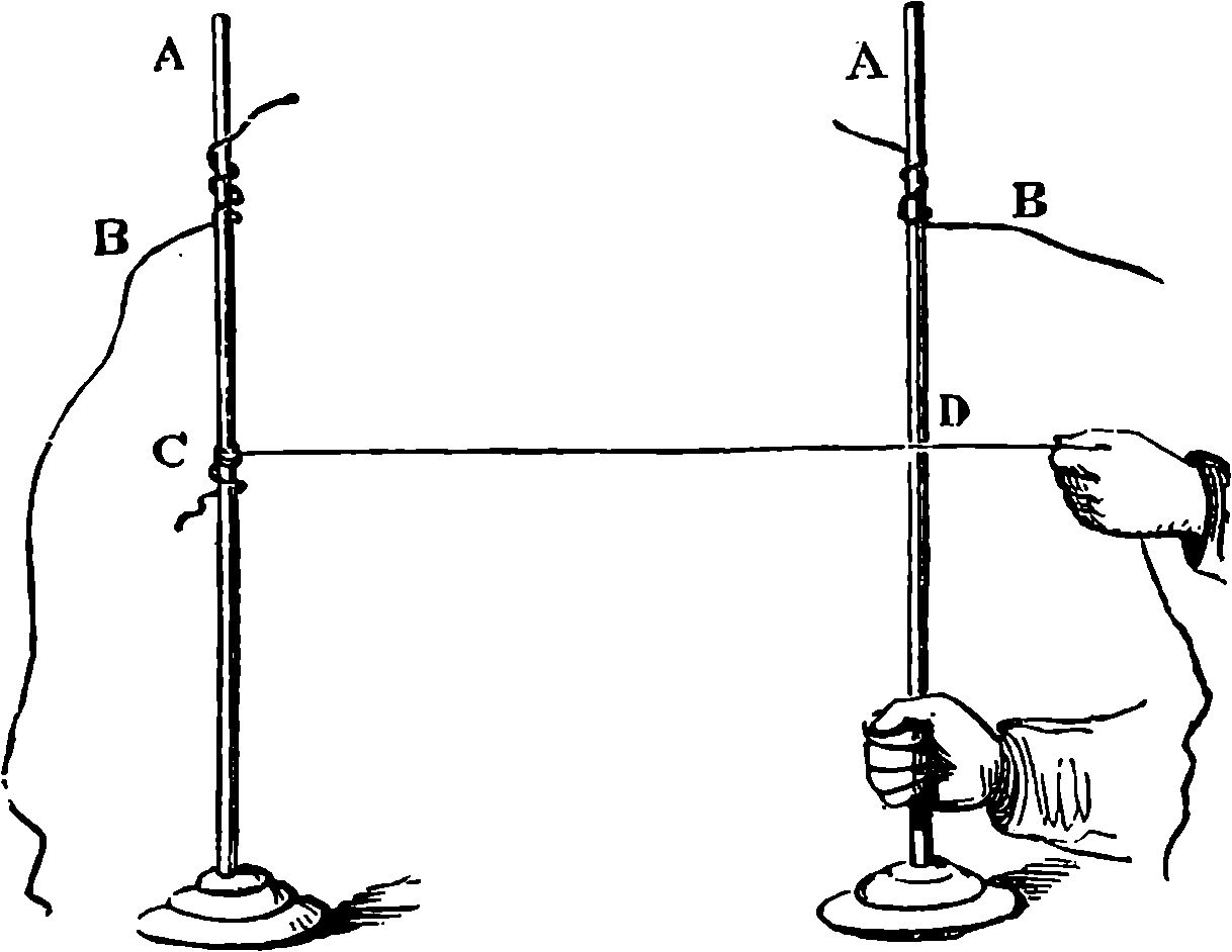 The statement here should have been more explicit, as it has reference to a state of things not to be realised in practice. Like the well-known “first law of motion,” it can neither be demonstrated à priori, nor proved by any direct and simple experiment. The first law of motion asserts that a body in motion, not acted on by any external force, will continue to move in a straight line, and with a uniform velocity. Now we cannot place a body in such a position that it will not be acted upon by some external forces; but the more we lessen the effect of external forces, the more nearly is the motion straight and uniform. Similarly in the case supposed, the intention is to show that the weight carried up is in a position to do just as much work as was done upon it. We must suppose several impracticable but conceivable conditions in order to eliminate considerations which do not concern the theoretical question; we must suppose the cord to be weightless and absolutely devoid of rigidity; the pulley to have no mass or inertia, that is to require no force to set it in motion, and to move without any friction; the air to offer no resistance; and the force of gravity to be uniform throughout the space. Some approximation to these conditions is practicable, as, for example, the pulley might be the lightest possible, and turn on friction wheels, the cord might be the finest silk thread, and so on. But it is not the influence of these external forces we are considering, but only the energy due to the position of the raised weight. Assuming, therefore, the disturbing conditions absolutely eliminated, it is not difficult to see that no downward force or pressure, however small, could be applied for ever so short a time, to the upper weight without setting the system in motion. The motion would be an accelerated one so long as the force was applied, it would become uniform when the force ceased to act; it would have a velocity proportionate to the force. In any case, after a time the descending weight would reach the ground, and for our point of view it is quite immaterial whether the time occupied by the movement were 5 minutes or 5,000 years, for be it observed, time does not enter into the definition of work as it does into that of “horse-power.” Then by pushing the conceived conditions to their limits, we may see that without considering any question of conversion of motion into heat, the raised weight can, in theory at least, give back again the energy spent upon it.