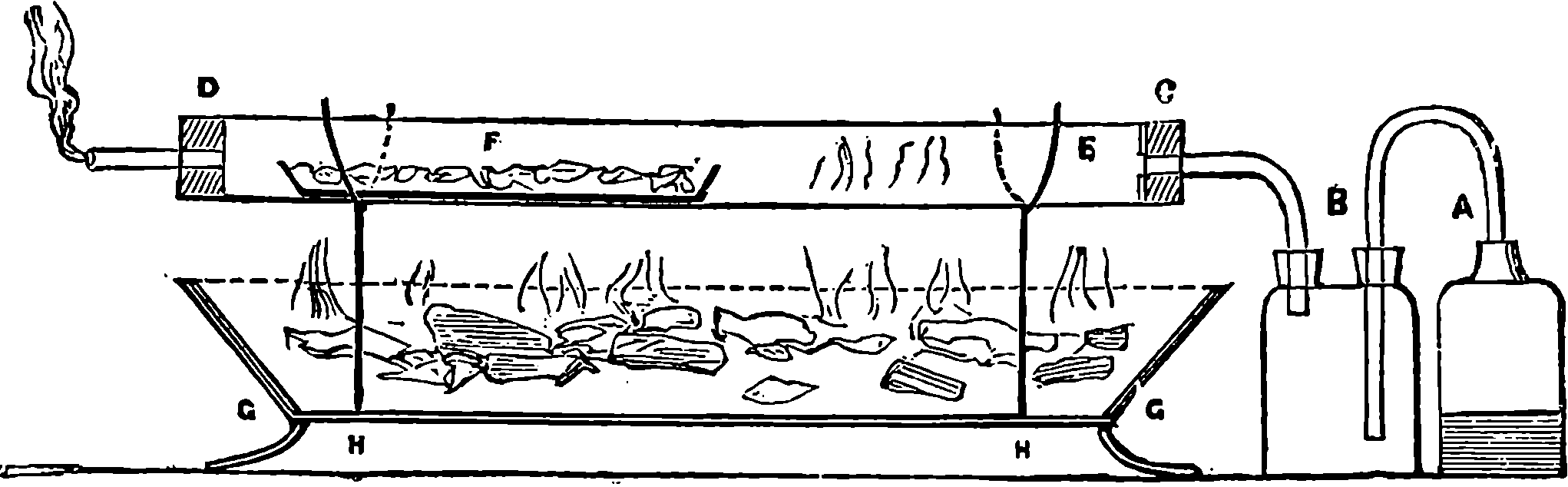 Anthracene was discovered in coal-tar by Laurent in 1832, and its properties were investigated by Anderson in 1862. It may be remarked that such investigations were not conducted with a view to any industrial uses of anthracene, but merely for the sake of chemistry as a science. Certainly no one could have supposed at that time that the slightest relation existed between anthracene and madder. Anthracene is a white solid hydro-carbon, which comes over only in the last stages of the distillation of coal-tar, accompanied by naphthaline, from which it is easily separated by means of spirits of wine, by which the naphthaline is readily 798dissolved, but the anthracene scarcely. Anderson, in 1861, discovered, among other results, that anthracene, C14H10, by treatment with nitric acid became changed into oxy-anthracene, C14H8O2; and this reaction we shall see is a step in the process of procuring alizarine from anthracene. Phenol, as already mentioned, can be made to yield benzol, by a process of deoxidization. With a view to similarly obtaining a hydro-carbon from alizarine, Graebe and Liebermann passed its vapours over heated zinc filings, and thus produced anthracene from alizarine. It now remained to find a means of reversing this process, that is, so to act on anthracene as to produce alizarine, and this was effected by treating anthracene with bromine, forming a substance which, on fusing with caustic potash, yielded alizarate of potash, from which pure alizarine resulted by treatment with hydrochloric acid. A much cheaper method was, however, necessary for manufacturing purposes, and it was found in a process by which oxy-anthracene, C14O8H2, is treated at a high temperature with strong sulphuric acid, and the product so formed heated with a strong solution of potash, yielding alizarate of potassium as before. Many other interesting substances appear to be formed in the reactions, but the nature of these bodies has as yet been imperfectly investigated. No doubt whatever can be entertained of the identity of natural with artificial alizarine; and the production of this substance, the first instance of a natural colouring matter made artificially, may be regarded as a great triumph of chemical science. It was not long ago supposed that the chemical bodies found in plants or animals, or produced by vital actions, could not possibly be formed by any artificial process from their elements. The laws which presided at their formation were, it was conceived, wholly different from those which governed the chemicals of the laboratory, for they were held to act exclusively under the influence of a mysterious agent, namely, “vital force.” It was supposed, for example, that from pure carbon, oxygen, and hydrogen, no chemist would ever be able to produce such a compound as acetic acid. Accordingly the domain of chemical science, previous to the end of the first quarter of the present century, was divided by an impassable barrier into the two regions of organic and inorganic chemistry. Now, however, the chemist is able to build up in his laboratory from their very elements a great number of the so-called organic bodies. And it is quite possible to do this in the case of alizarine; that is, a chemist having in his laboratory the elements, hydrogen, carbon, oxygen, &c., could actually build up the substance which gives its value to madder.