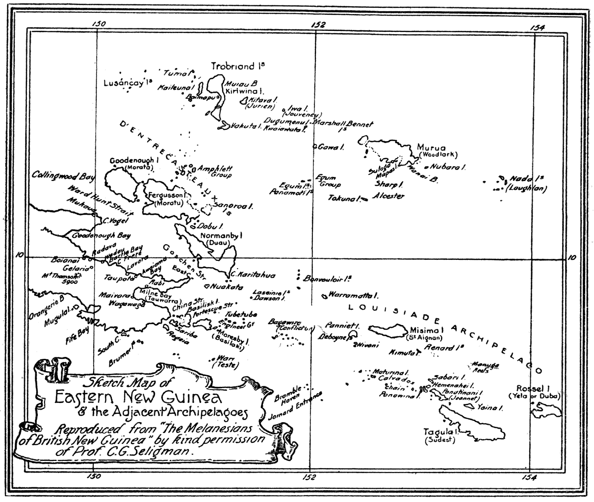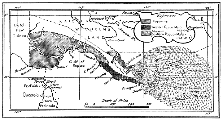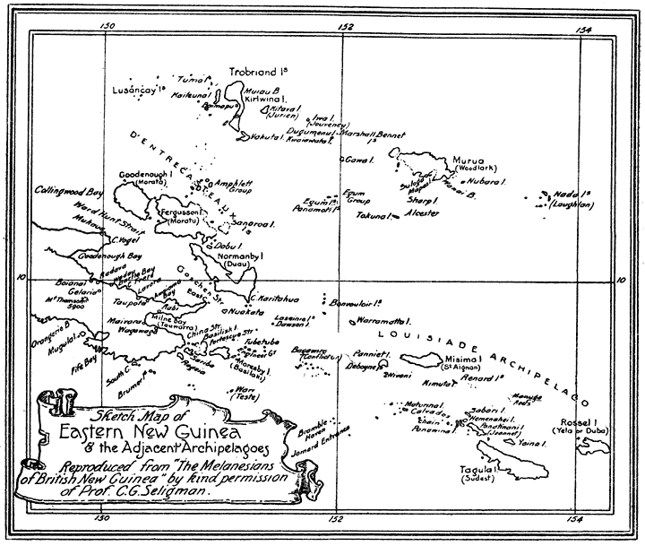 Two maps and two plates are reproduced by kind permission of Professor Seligman from his “Melanesians of British New Guinea.” I have to thank the Editor of Man (Captain T. A. Joyce) for his permission to use here again the plates which were previously published in that paper.