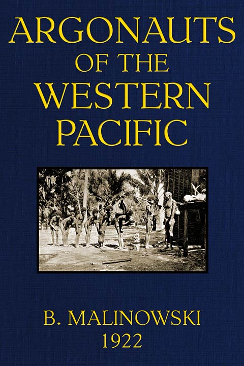 In the present state of Ethnography, when so much has still to be done in paving the way for forthcoming research and in fixing its scope, each new contribution ought to justify its appearance in several Points. It ought to show some advance in method; it ought to push research beyond its previous limits in depth, in width, or in both; finally, it ought to endeavour to present its results in a manner exact, but not dry. The specialist interested in method, in reading this work, will find set out in the Introduction, Divisions II–IX and in Chapter XVIII, the exposition of my points of view and efforts in this direction. The reader who is concerned with results, rather than with the way of obtaining them, will find in Chapters IV to XXI a consecutive narrative of the Kula expeditions, and the various associated customs and beliefs. The student who is interested, not only in the narrative, but in the ethnographic background for it, and a clear definition of the institution, will find the first in Chapters I and II, and the latter in Chapter III.
