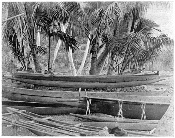 Definite forms of exchange along definite trade routes are to be found established between the various tribes. A most remarkable form of intertribal trade is that obtaining between the Motu of Port Moresby and the tribes of the Papuan Gulf. The Motu sail for hundreds of miles in heavy, unwieldy canoes, called lakatoi, which are provided with the characteristic crab-claw sails. They bring pottery and shell ornaments, in olden days, stone blades, to Gulf Papuans, from whom they obtain in exchange sago and the heavy dug-outs, which are used afterwards by the Motu for the construction of their lakatoi canoes.1 [2]