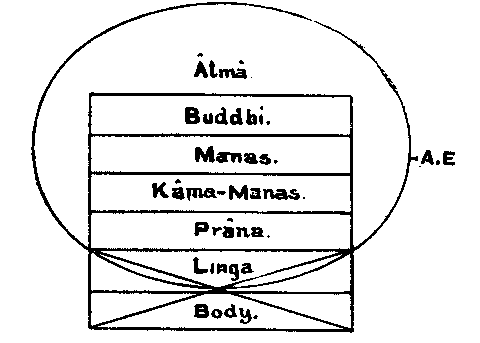 Life cannot come immediately from the subjective to the objective, for Nature goes gradually through each sphere. Therefore the Linga Sharîra is the intermediary between Prâna and our physical body, and pumps in the life.