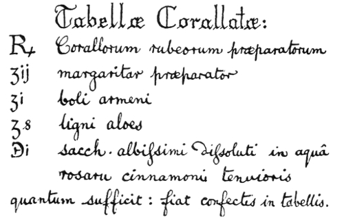 | ℞ | Corallorum rubeorum præparatorum |
