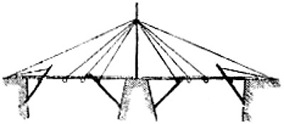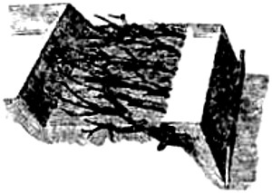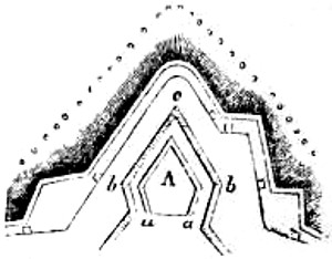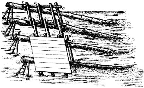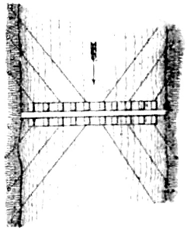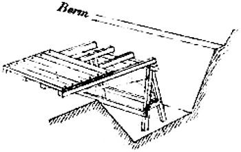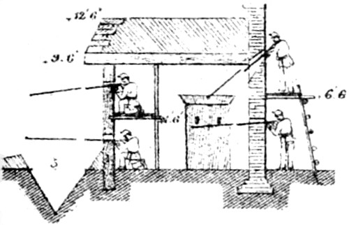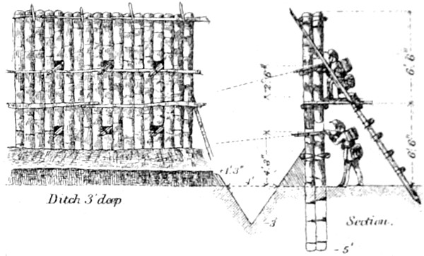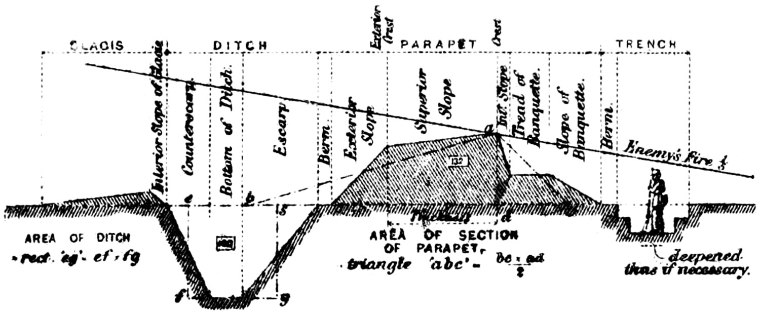 Abatis, or Abattis. A means of defense formed by cutting off the smaller branches of trees felled in the direction from which the enemy may be expected. The ends of the larger branches are sharpened and the butts of the limbs or trees fastened by crochet picket, or by imbedding in the earth, so that they cannot be easily removed. Abatis is generally used in parts of a ditch or intrenchment to delay the enemy under fire.