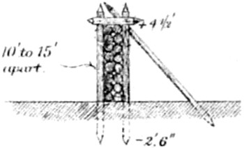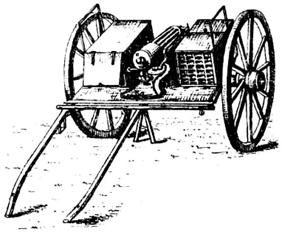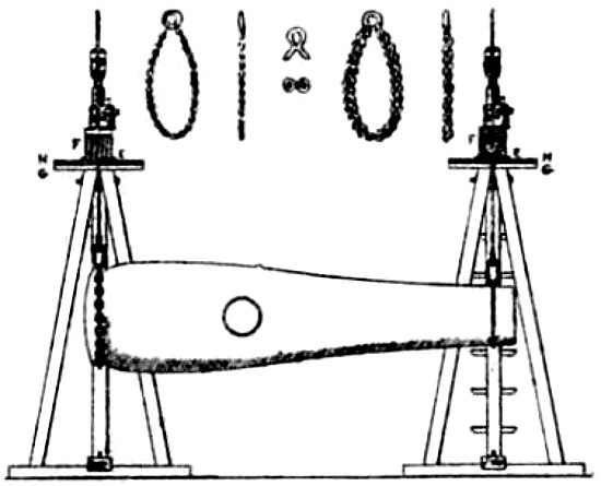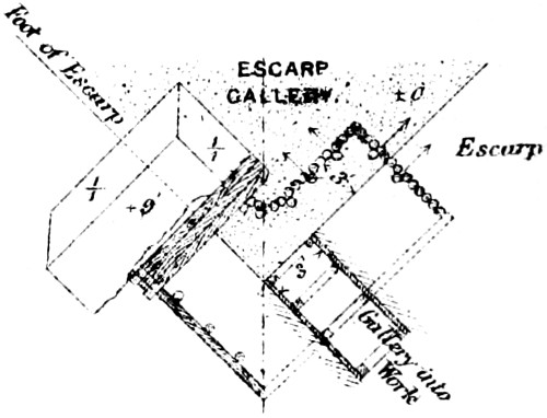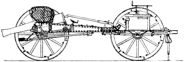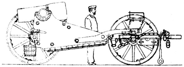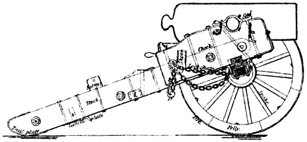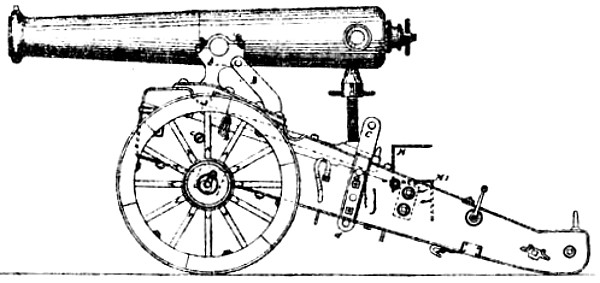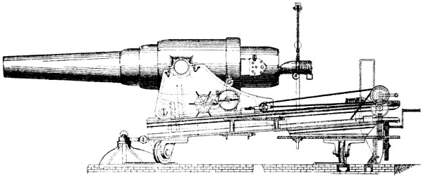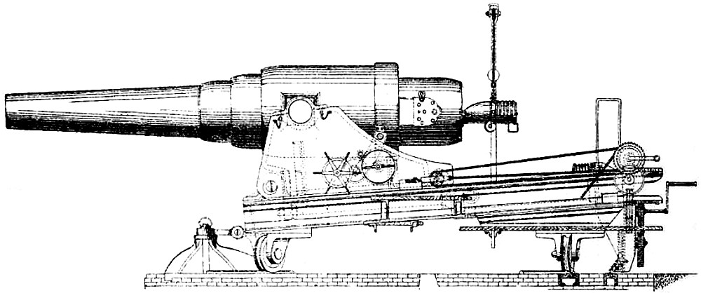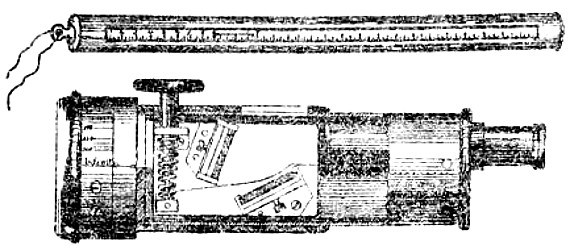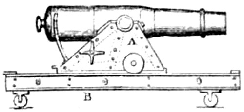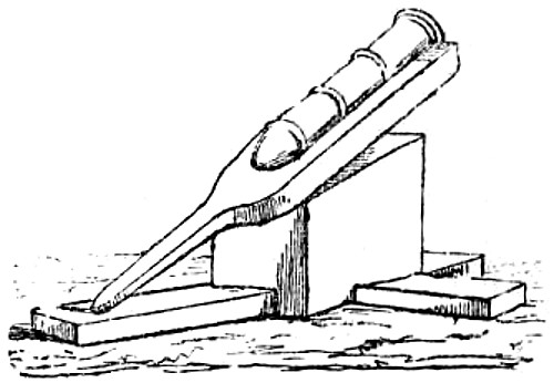 Absolute Force of Gunpowder. Is measured by the pressure it exerts on its environment when it exactly fills the space in which it is fired. Various attempts have been made to determine this force experimentally with widely different results. Robins estimated the pressure on the square inch at 1000 atmospheres, Hutton at 1800, and Count Rumford as high as 100,000 atmospheres. While Rodman, by experiments upon strong cast-iron shells, verified the accuracy of Rumford’s formulas, he found that his estimate of the force was greatly in error. According to Rodman the pressure is approximately 14,000 atmospheres. Dr. Woodbridge, another American philosopher and inventor, has shown that, fired in small quantities, the force of gunpowder does not exceed 6200 atmospheres. This agrees closely with the conclusion arrived at by the English “Committee on Explosives,” 1875, who found that even in large guns the force did not exceed 42 tons.