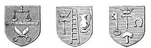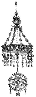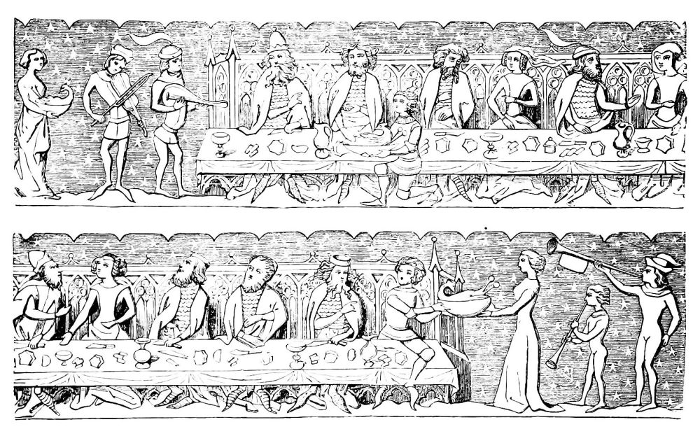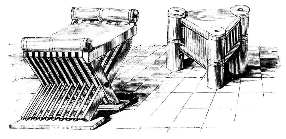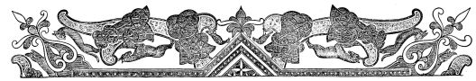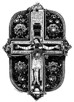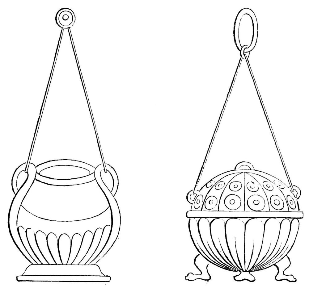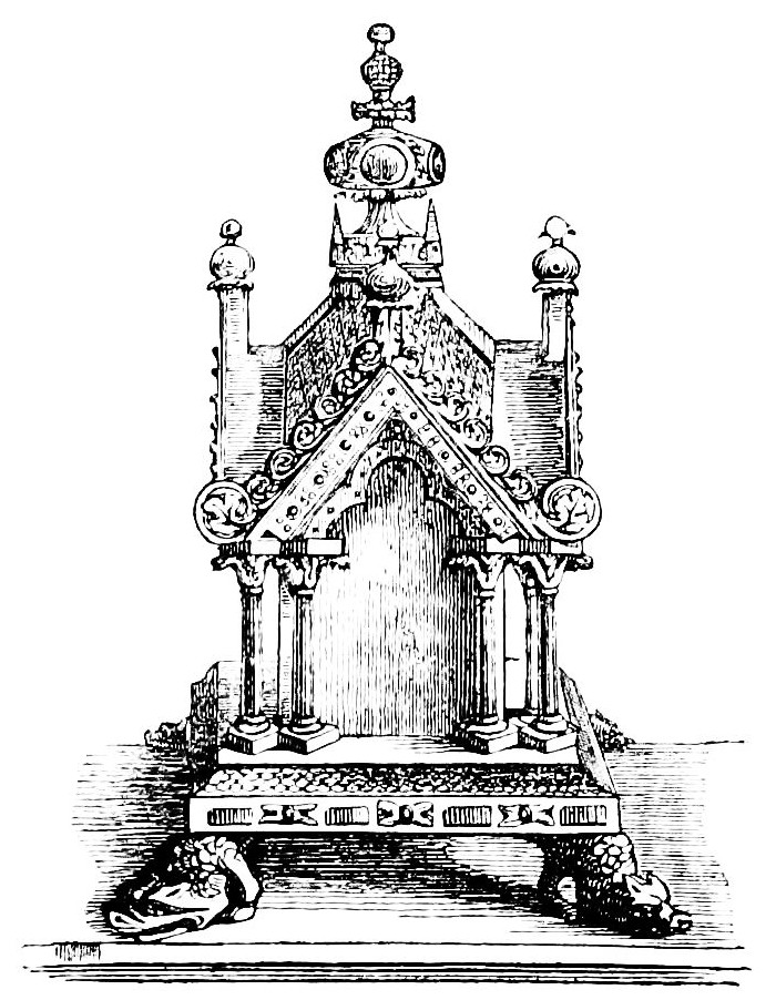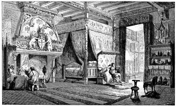 | Simplicity of Furniture among the Gauls and Franks.—Introduction of costly taste in articles of Furniture of the Seventh Century.—Arm-chair of Dagobert.—Round Table of King Artus.—Influence of the Crusades.—Regal Banquet in the time of Charles V.—Benches.—Sideboards.—Dinner Services.—Goblets.—Brassware.—Casks.—Lighting.—Beds.—Carved-wood Furniture.—Locksmith’s Work.—Glass and Mirrors.—Room of a Feudal Seigneur.—Costliness of Furniture used for Ecclesiastical Purposes.—Altars.—Censers.—Shrines and Reliquaries.—Gratings and Iron-mountings. | ||