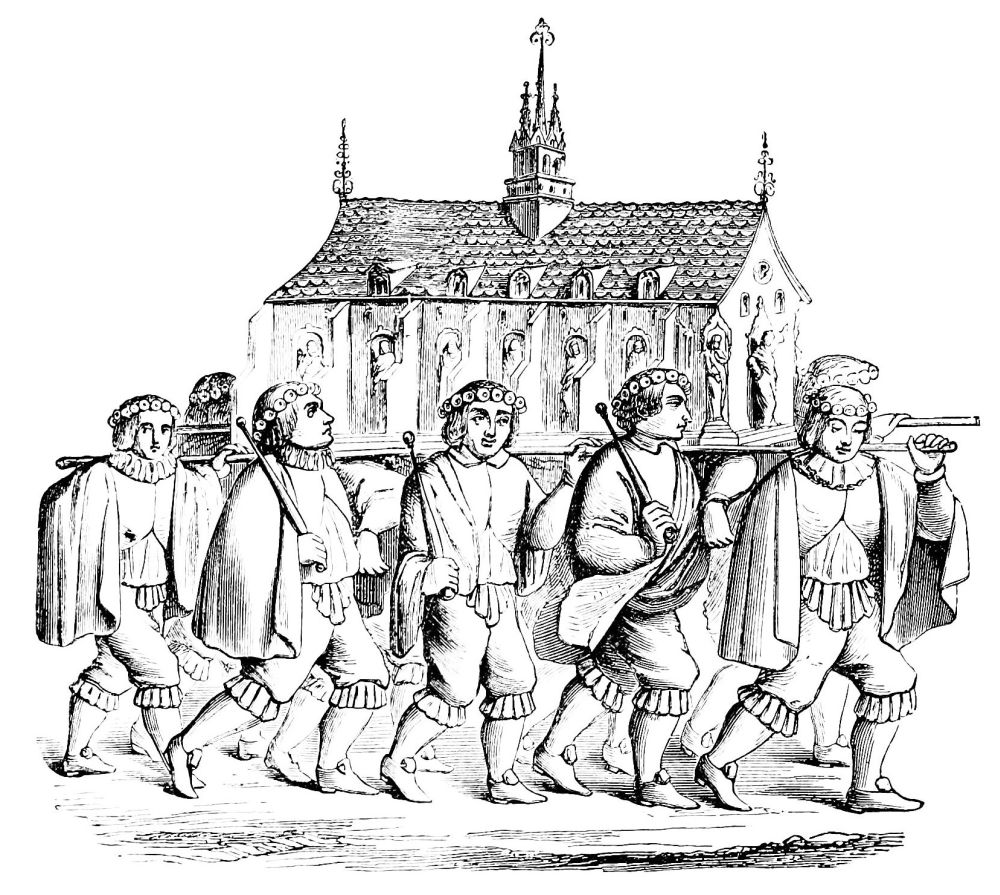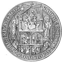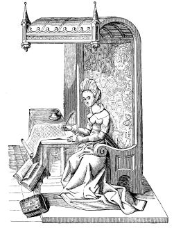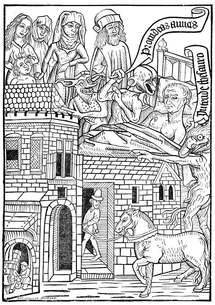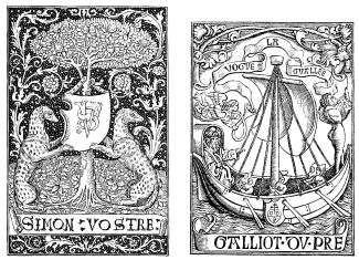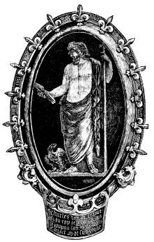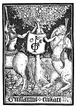 The Sorbonne then, like the University, was the cradle and the foster-mother in Paris of the art of printing, which soon attained to a nourishing condition, and produced, during the last twenty years of the fourteenth[61] century, numerous fine books of history, poetry, literature, and devotion, under the direction of the able and learned Pierre Caron, Pasquier Bonhomme, Anthony Vérard, Simon Vostre (Fig. 398), &c.