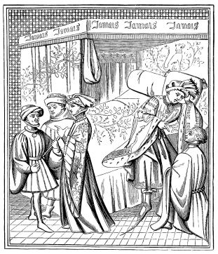 At this period, Fust himself came to Paris, where he established a dépôt of printed books, but left the management of the concern to one of his own fellow-countrymen. This person dying soon afterwards, the books found in his house, being the property of a foreigner, were sold by right of forfeiture, for the king’s benefit. But upon the petition of Peter Schœffer, backed up by the Elector of Mayence, the King, Louis XI., granted to the petitioners a sum of 2,425 golden dollars, “in consideration of the trouble and labour which the said petitioners had taken for the said art and trade of printing, and of the benefit and utility which resulted and may result from this art to the whole world, as well by increasing knowledge as in other ways.” This memorable decree of the King of France bears date April 21, 1475.