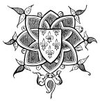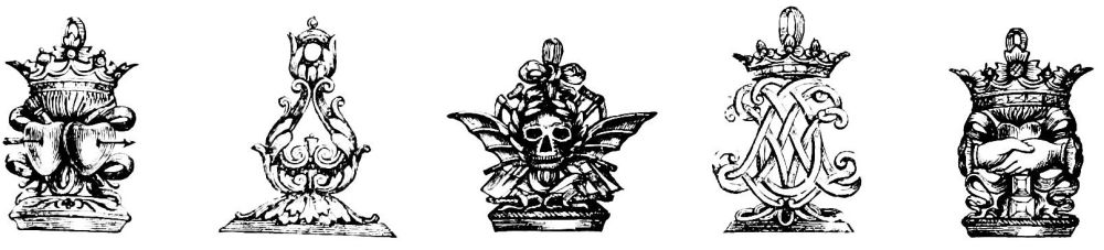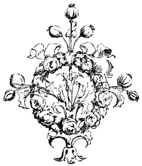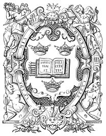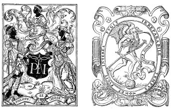 Fig. 406.—Mark of Philippe le Noir, Printer, Bookseller, and Bookbinder, at Paris, 1536, living in the Rue St. Jacques, at the sign of the “Rose Couronnée.”
