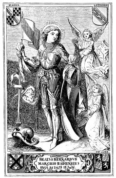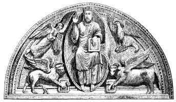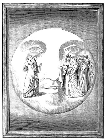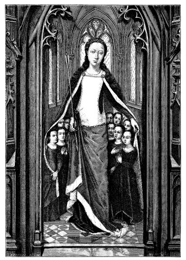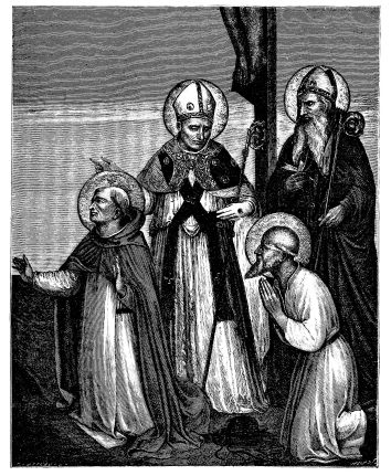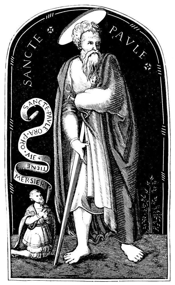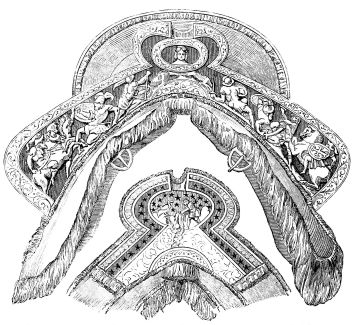 [29] Amandaire—almond-shaped. Strictly speaking, the aureola is the nimbus of the whole body, as the nimbus is the aureola of the head. In Fairholt’s “Dictionary of Terms in Art” is an engraving showing a saint standing in the centre of an almond-shaped aureola—[Ed.]