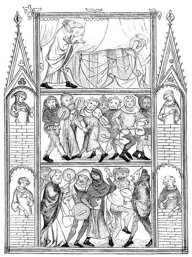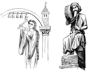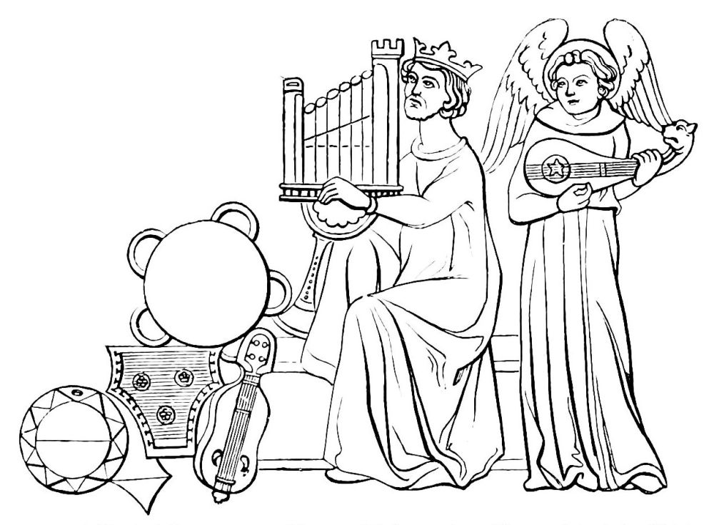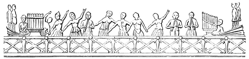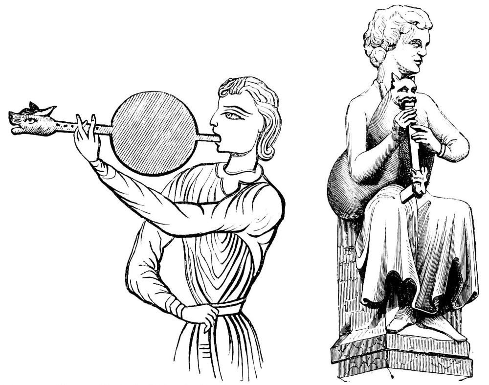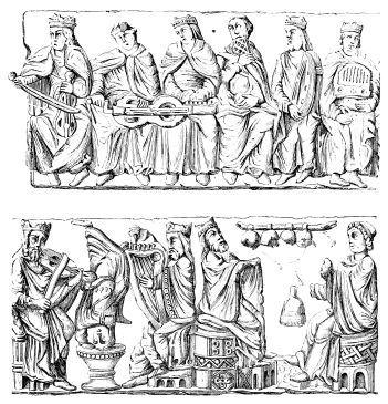 | Music in the Middle Ages.—Musical Instruments from the Fourth to the Thirteenth Century.—Wind Instruments: the Single and Double Flute, the Pandean Pipes, the Reed-pipe.—The Hautboy, the Flageolet, Trumpets, Horns, Olifants, the Hydraulic Organ, the Bellows-Organ.—Instruments of Percussion: the Bell, the Hand-bell, Cymbals, the Timbrel, the Triangle, the Bombulum, Drums.—Stringed Instruments: the Lyre, the Cithern, the Harp, the Psaltery, the Nable, the Chorus, the Organistrum, the Lute and the Guitar, the Crout, the Rote, the Viola, the Gigue, the Monochord. | ||