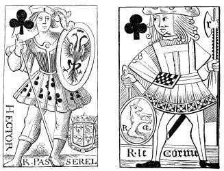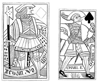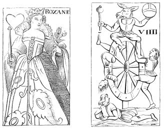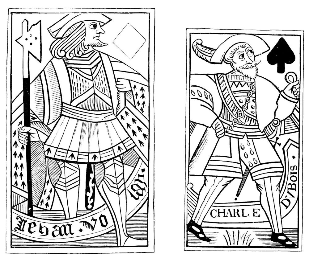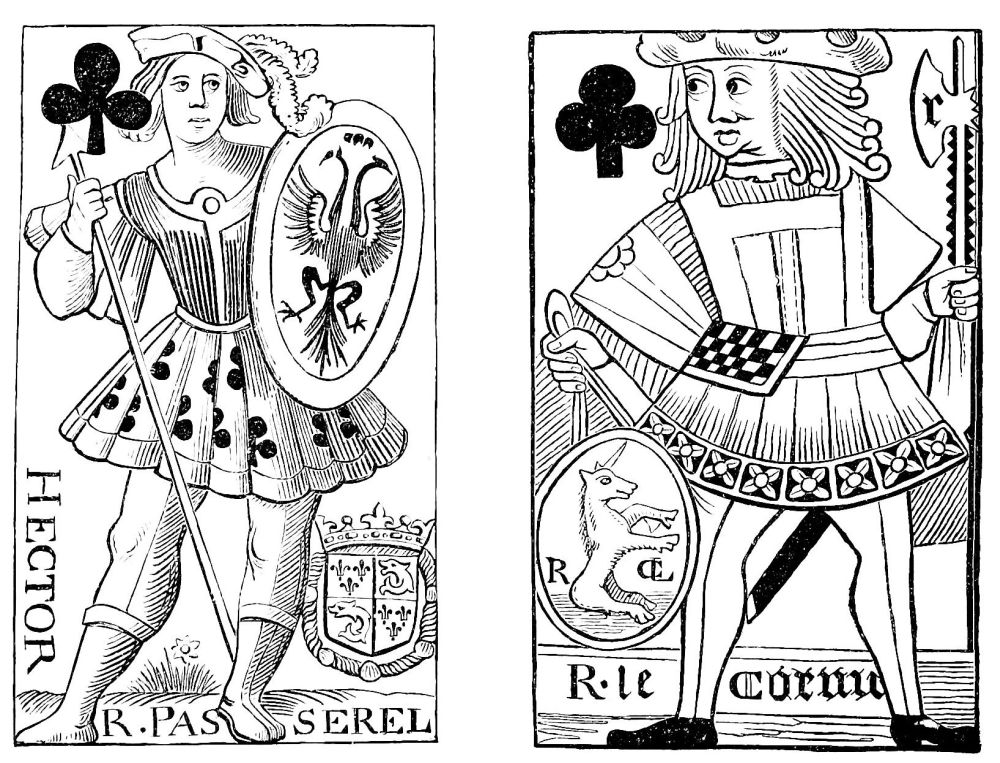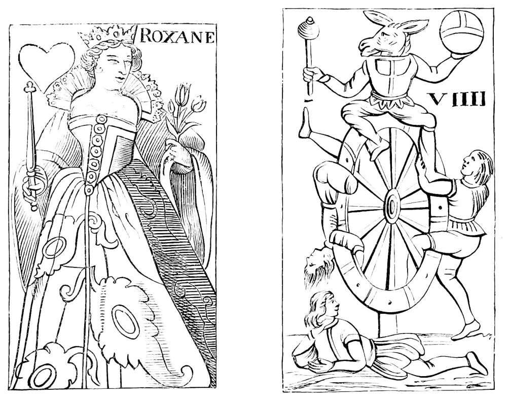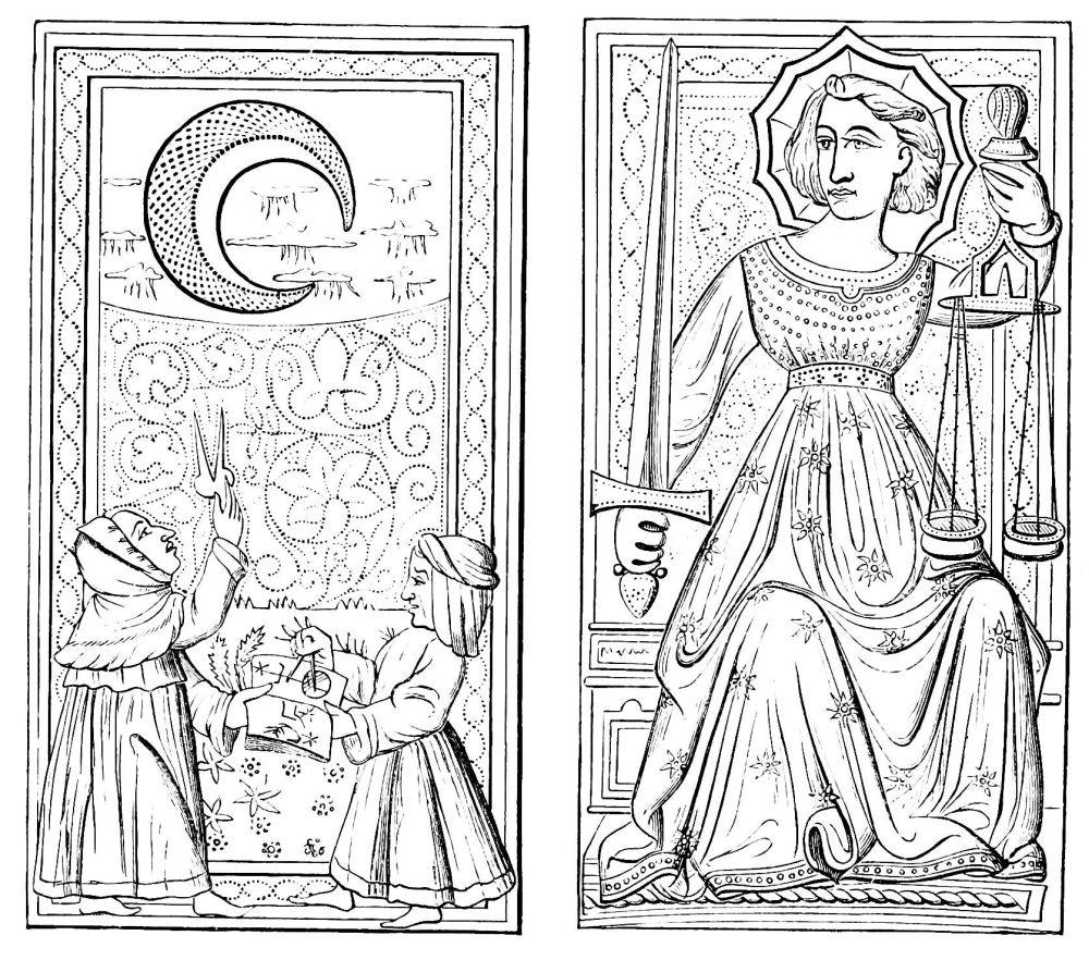 | Supposed Date of their Invention.—Existed in India in the Twelfth Century.—Their connection with the Game of Chess.—Brought into Europe after the Crusades.—First Mention of a Game with Cards in 1379.—Cards well known in the Fifteenth Century in Spain, Germany, and France, under the name of Tarots.—Cards called Charles the Sixth’s must have been Tarots.—Ancient Cards, French, Italian, and German.—Cards {xiii}contributing to the Invention of Wood-Engraving and Printing. | ||
