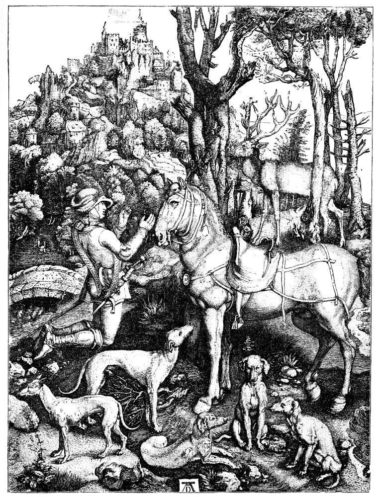 [42] We presume this plate to be that commonly known among collectors of prints as “Death’s Horse;” it represents a knight on horseback followed by Death. The best impressions of this plate are prior to the date 1513. It is also called “The Christian Knight,” and “The Knight, Death, and the Devil.”—[Ed.]