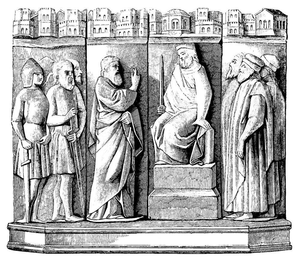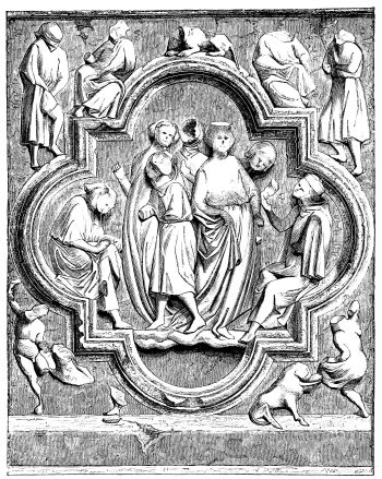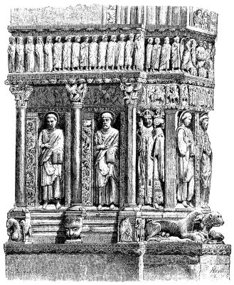 [17] This is a literal rendering of the text of M. Labarte; but the artists to whom allusion is made were only two, Niccola and Giovanni, sculptors and architects of Pisa. According to Vasari, Niccola, father of Giovanni (Jean or John), first worked under certain Greek sculptors who were executing the figures and other sculptural ornaments of the Duomo of Pisa and the Chapel of San Giovanni.—[Ed.]