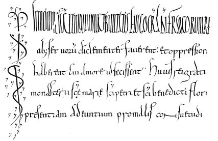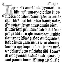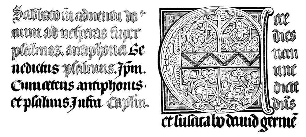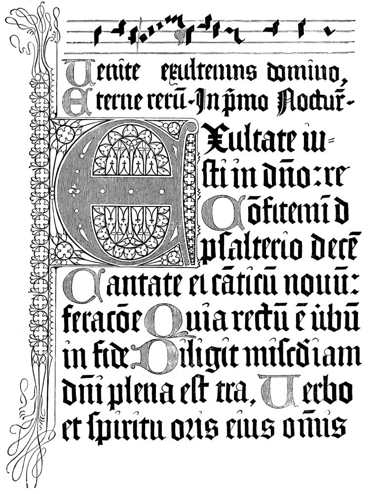 Fig. 396.—Fac-simile of a page of the Psalter of 1459, second edition, or the second copy that was struck off. Printed at Mayence, by J. Fust and P. Schœffer.