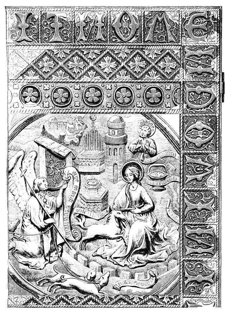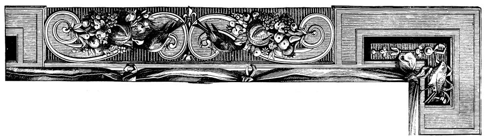 All the Arts are interesting in themselves. Their productions awaken attention and excite curiosity. But here it is not one Art only that is treated of. We pass in review all the Arts, starting from the fourth century to the second half of the sixteenth—Architecture raising churches and abbeys, palaces and public memorials, strong fortresses and the ramparts of cities; Sculpture adorning and perfecting other Arts by its works in stone, marble, bronze, wood, and ivory; Painting, commencing with mosaic and enamels, contributing to the decoration of buildings jointly with stained glass and frescoes, embellishing and illuminating manuscripts before it arrived at its highest point of perfection, with the Art of Giotto and Raphael, of Hemling and Albert Dürer; Engraving on wood and metal, with which is associated the work of the medallist and the goldsmith; and after attempting to touch upon Playing-cards and Niello-work, we suddenly evoke that sublime invention destined to change the face of the world—Printing. Such are, in brief, some of the principal features of this splendid picture. One can imagine what an infinity, what variety and richness, of details it should contain.