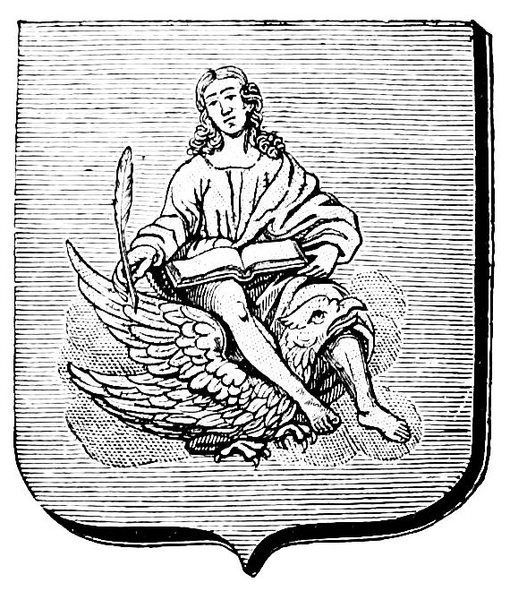 [59] “Garni de deux fermaulx d’argent, dorez, armoiez d’azur à une aigle d’or à deux testes, onglé de gueulles, auquel a ung tuyau d’argent doré pour tourner les feuilles, à trois escussons desdites armes, couvert d’une chemise de veluyau vermeil.”