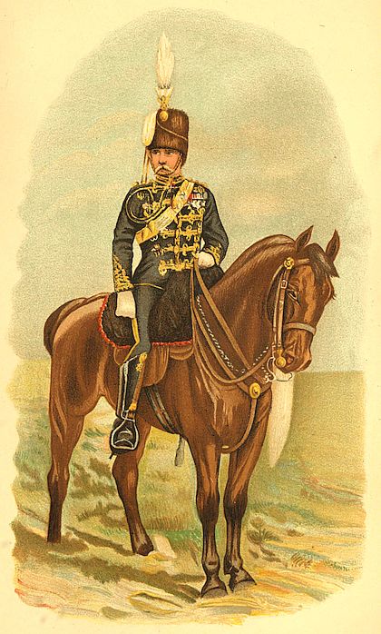 The fourth regiment, the one that now bears the title of the Nineteenth Princess of Wales’ Own Hussars, was originally raised by the East India Company on the outbreak of the Mutiny of the Bengal Army, and received its present number on the transfer of its services to the Crown. In 1882, they formed part of the expedition to Egypt under Lord Wolseley, to put down the rebellion of Arabi Pasha. In 1884, they formed part of the expedition to Suakin under Sir Gerald Graham, and fought at El-Teb and Tamai, suffering severe losses in the first of the two actions. In 1885, they were selected by Lord Wolseley to form part of the expedition to Khartoum; the only horsemen that accompanied the force. The Head Quarters of the regiment formed part of the Desert Column, under Sir Herbert Stewart, and fought at Abu Klea and Abu Krou, while a squadron of the regiment accompanied the River Column, under General Earle, and were present at the action at Kirbekan. A third portion of the regiment was at the same time employed at Suakin, where it experienced serious losses. For its services in 1885 the regiment was granted the distinctive title it now bears; a proof that it is no unworthy successor of the regiment that helped to strengthen the foundations of our power in India, under Cornwallis, Harris and Wellington, and whose[x] honourable badges it wears, in addition to those it has won for itself.