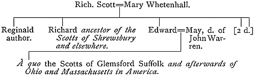 But as the first part of the ancestry given in this book is not supported by anything beyond possibility and legend, so this latter portion is incorrect in various particulars. Instead, however, of taking each inaccuracy item by item, it will be simpler to give a consecutive account of such facts as to his ancestry, and as to Reginald Scott himself, as can be proved by documentary evidence or rendered probable by deductions therefrom.